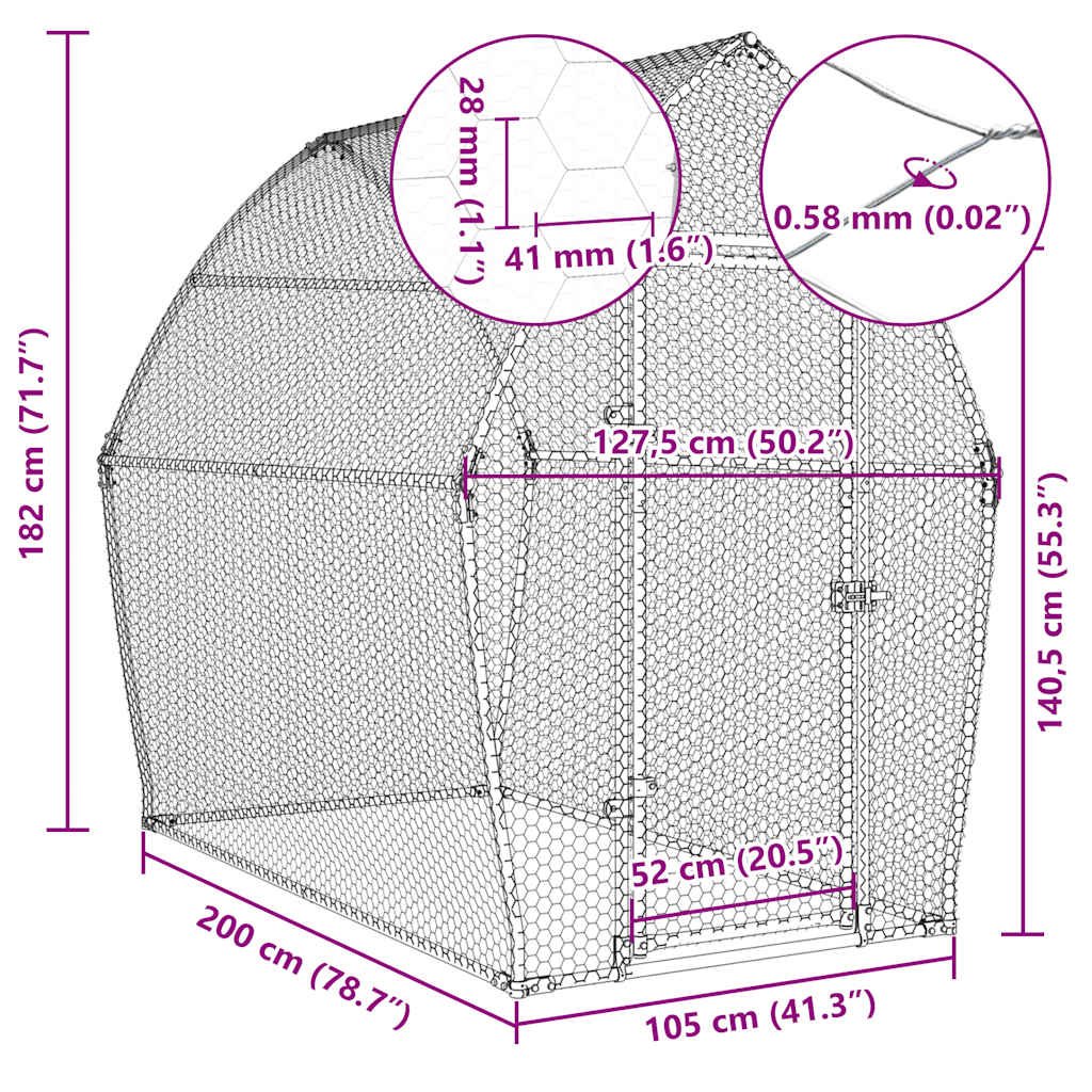 Klec pro kuřata stříbrná 200 x 105 x 182 cm pozinkovaná ocel 172555