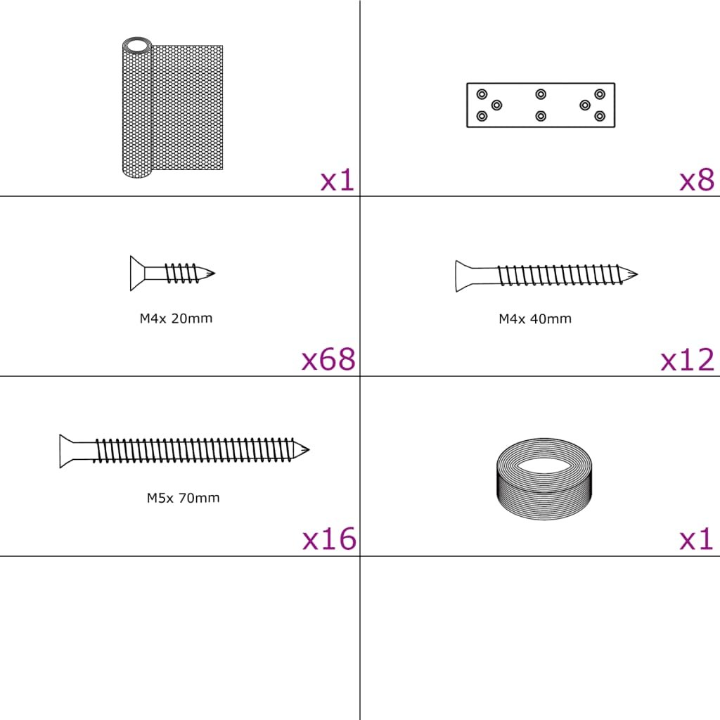 - Dodávka obsahuje pouze roli drátěného pletiva, vázací drát, ploché spojky a vruty do dřeva.