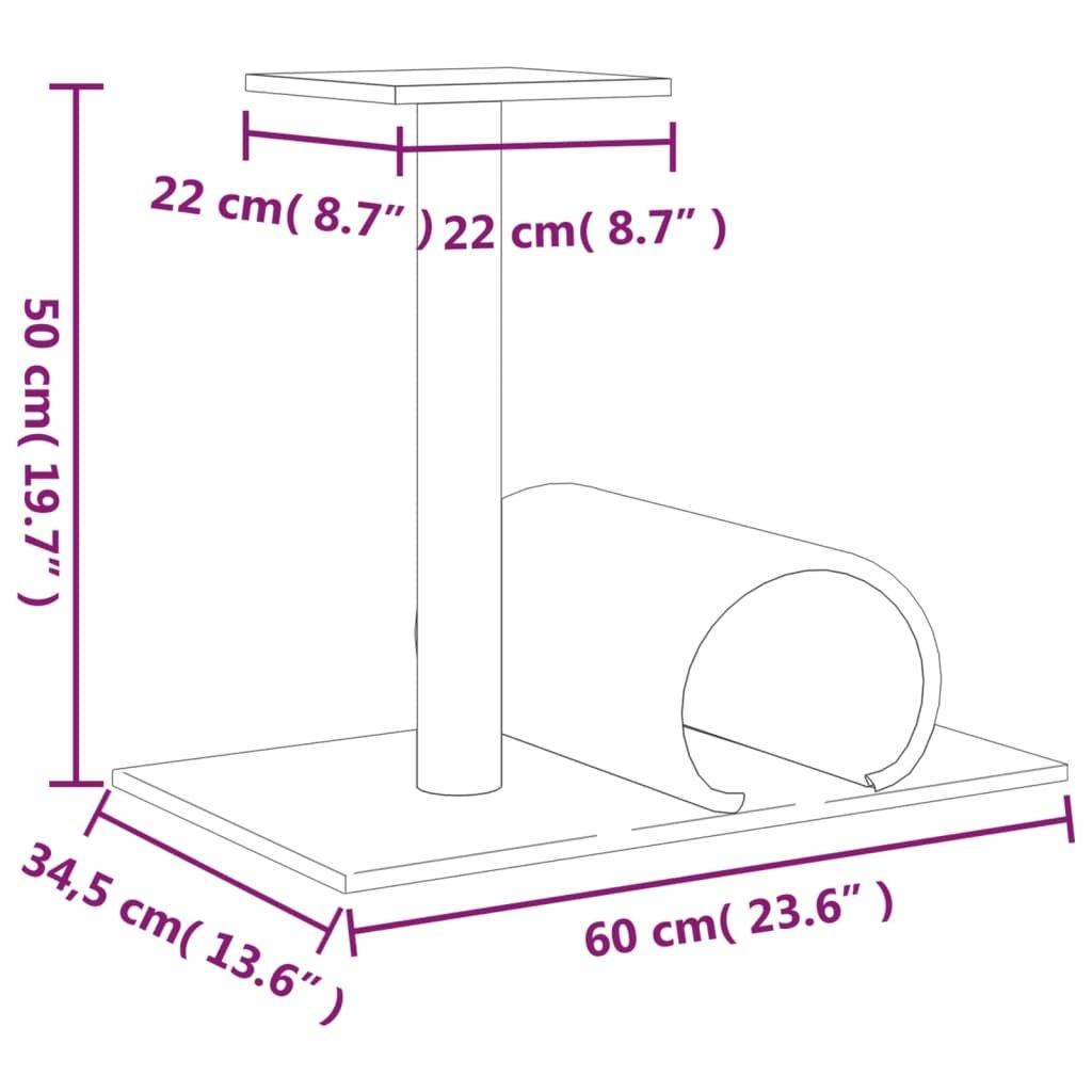 Škrabadlo pro kočky s tunelem světle šedé 60 x 34,5 x 50 cm 171697