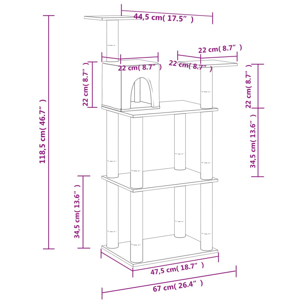 Toto kočičí škrabadlo je dokonalým útočištěm, kde vaše kočky mohou škrábat, lézt, pozorovat okolí, schovávat se a odpočívat. Dává vašim kočkám příležitost protáhnout se a cvičit, zejména v chladných zimních měsících, kdy nemohou ven.