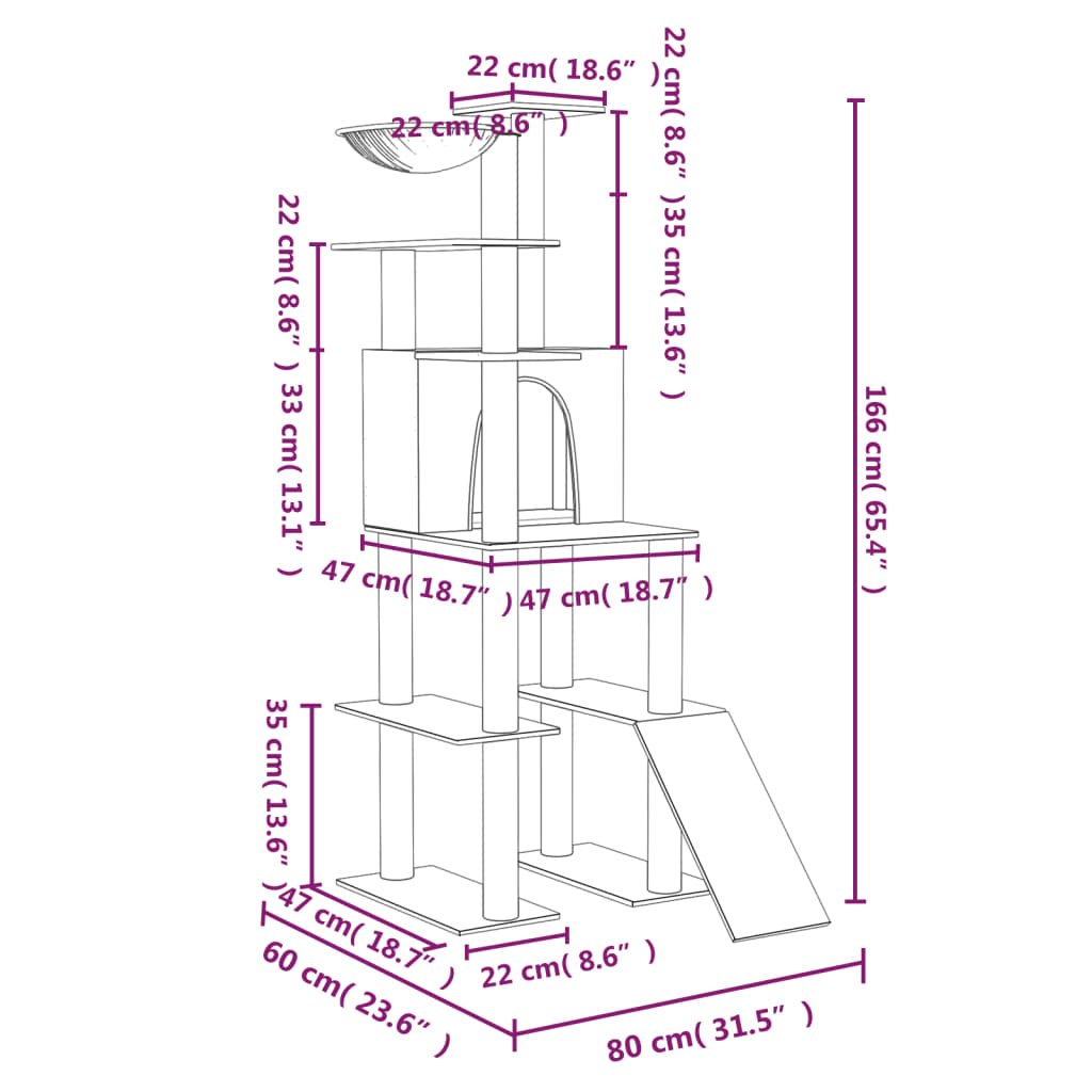 Škrabadlo pro kočky se sisalovými sloupky krémové 166 cm 171681