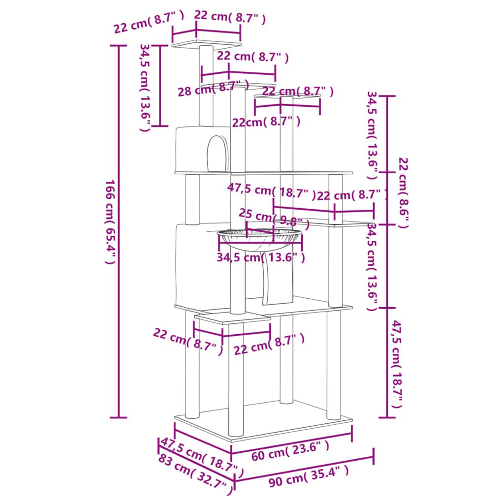- Všestranná věž pro kočky: Víceúrovňový nábytek pro kočky je navržen se 2 domečky, košem a plošinami, které poskytují kočkám ideální místo pro šplhání, sezení, škrábání, schovávání se a také k odpočinku.