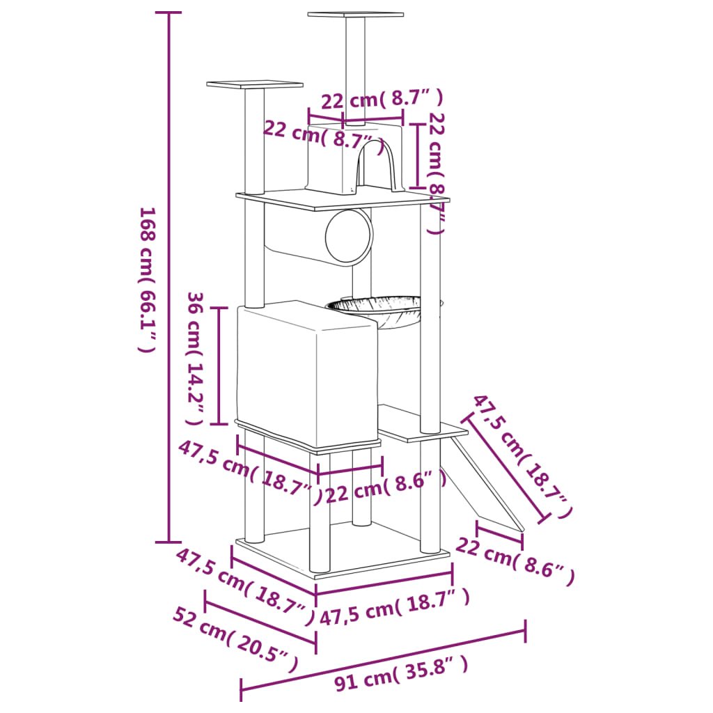 Škrabadlo pro kočky se sisalovými sloupky světle šedé 168 cm 171700