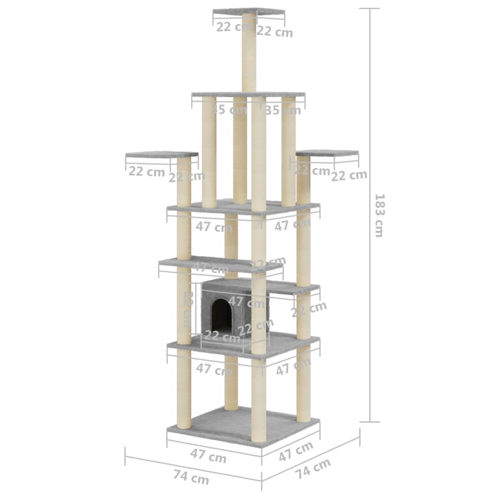 Škrabadlo pro kočky se sisalovými sloupky světle šedé 183 cm 171483