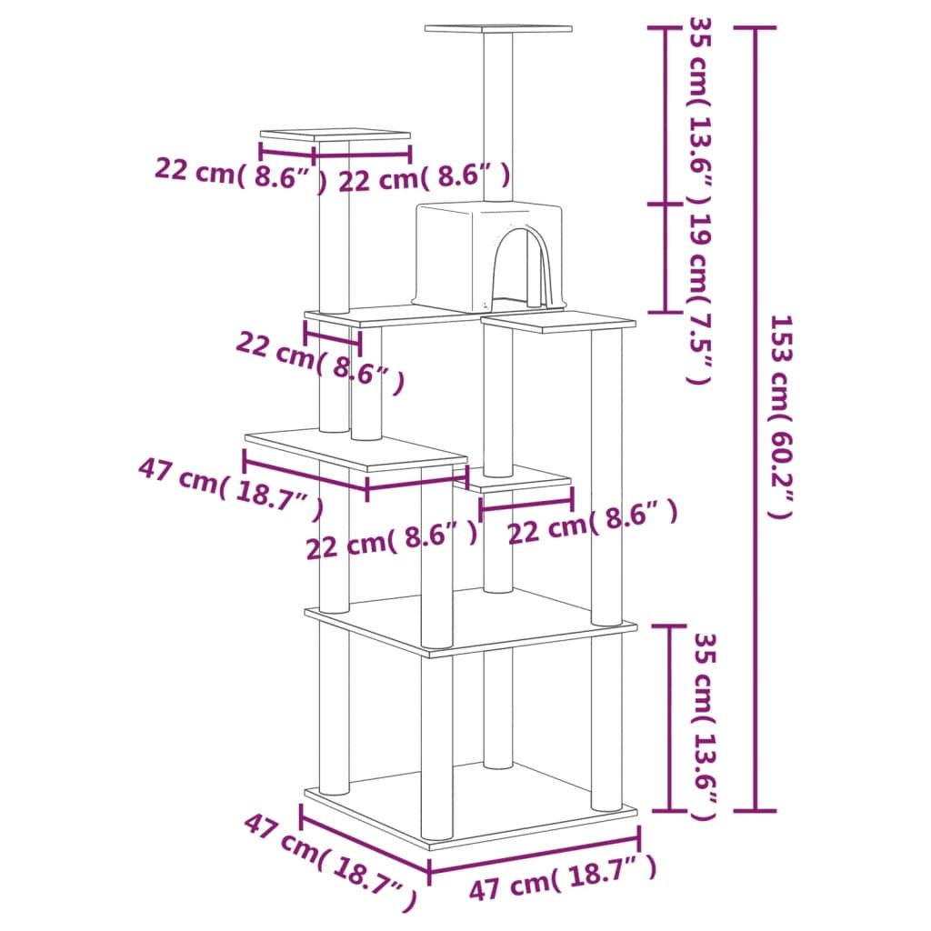 Škrabadlo pro kočky se sisalovými sloupky tmavě šedé 153 cm 171638