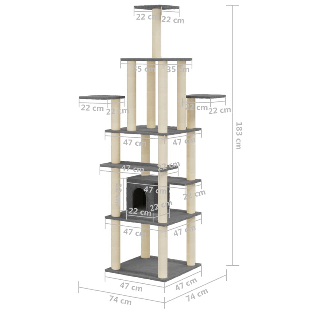 Škrabadlo pro kočky se sisalovými sloupky tmavě šedé 183 cm 171484