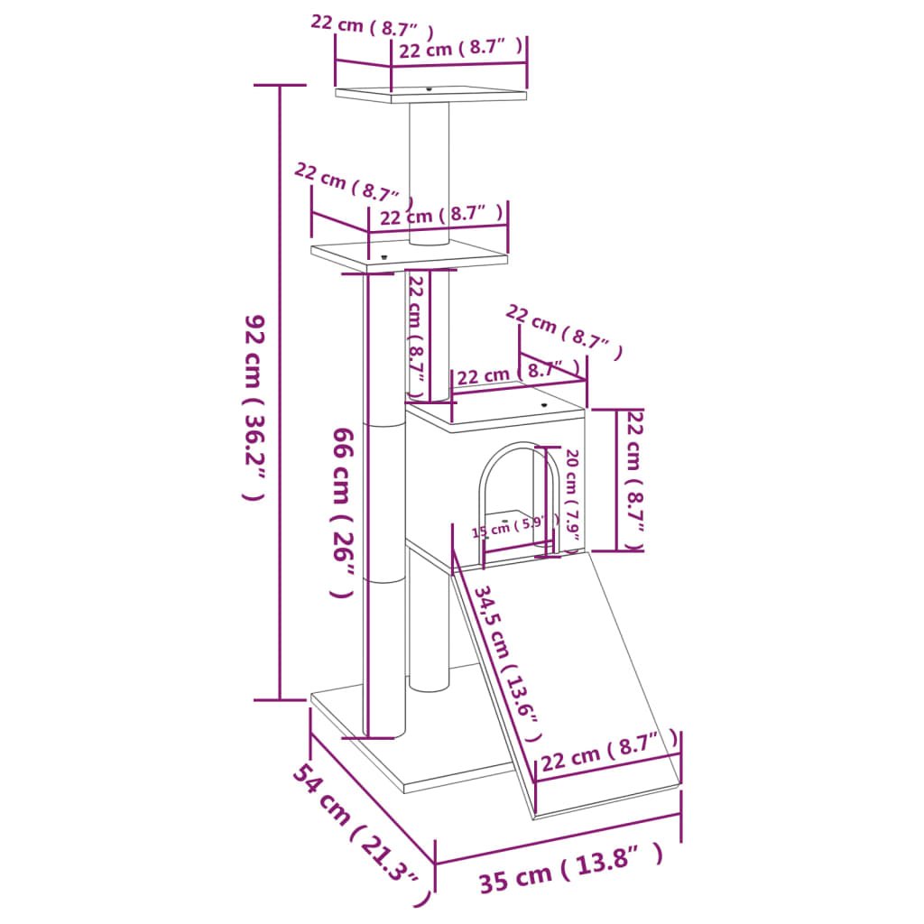 Škrabadlo pro kočky se sisalovými sloupky tmavě šedé 92 cm 171514