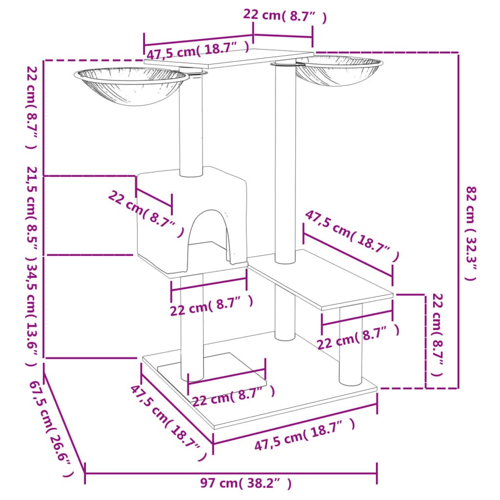 - Všestranná věž pro kočky: Víceúrovňový nábytek pro kočky je navržen se 2 koši, domečkem a plošinami, které poskytují kočkám ideální místo pro šplhání, sezení, škrábání, schovávání se a také k odpočinku.
