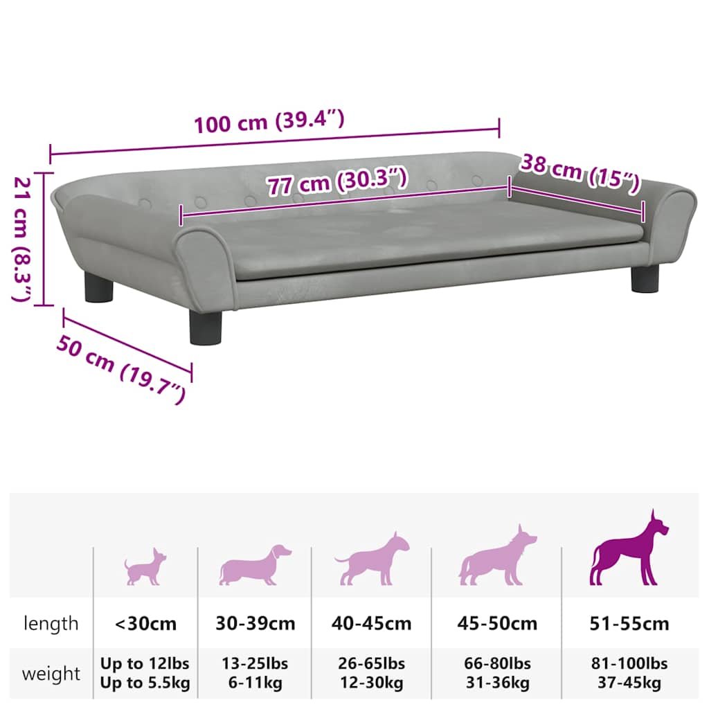 Pelíšek pro psy světle šedý 100 x 50 x 21 cm samet 172006