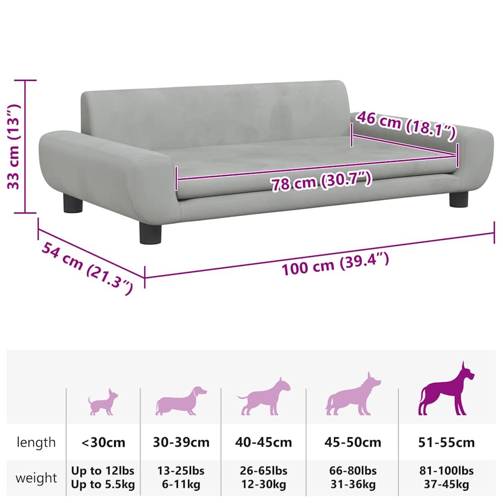 Pelíšek pro psy světle šedý 100 x 54 x 33 cm samet 171982
