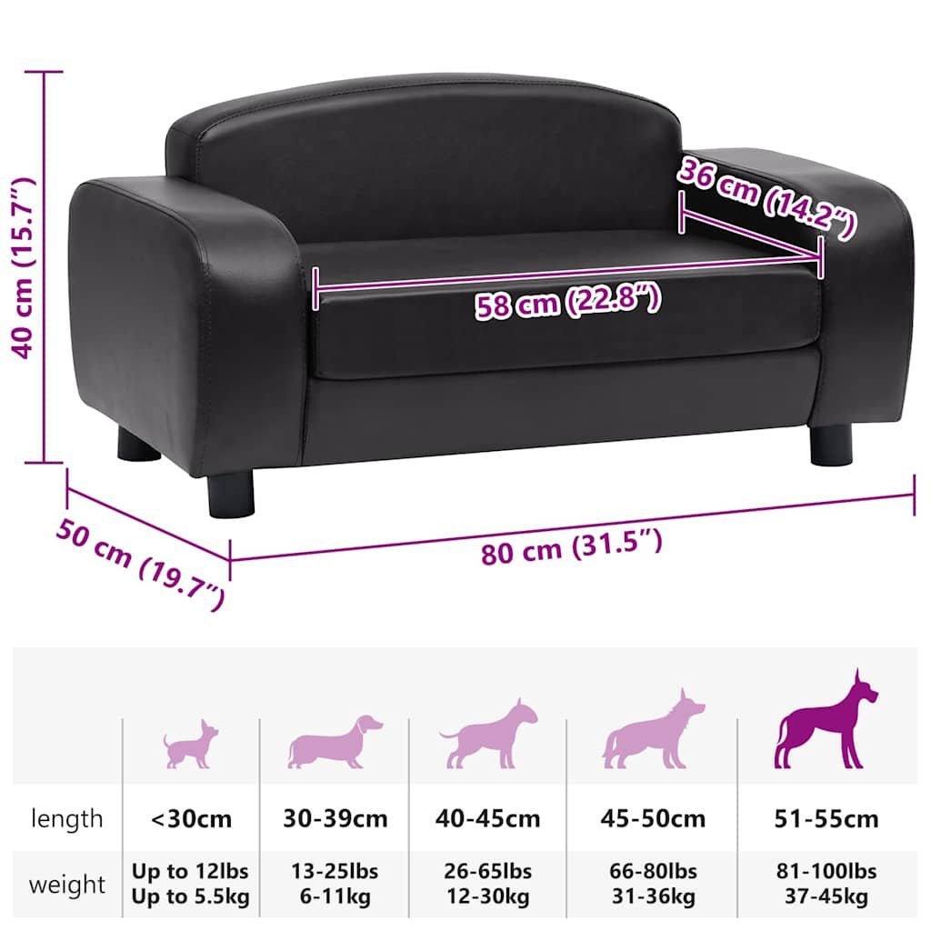 Pohovka pro psy černá 80 x 50 x 40 cm umělá kůže 170965