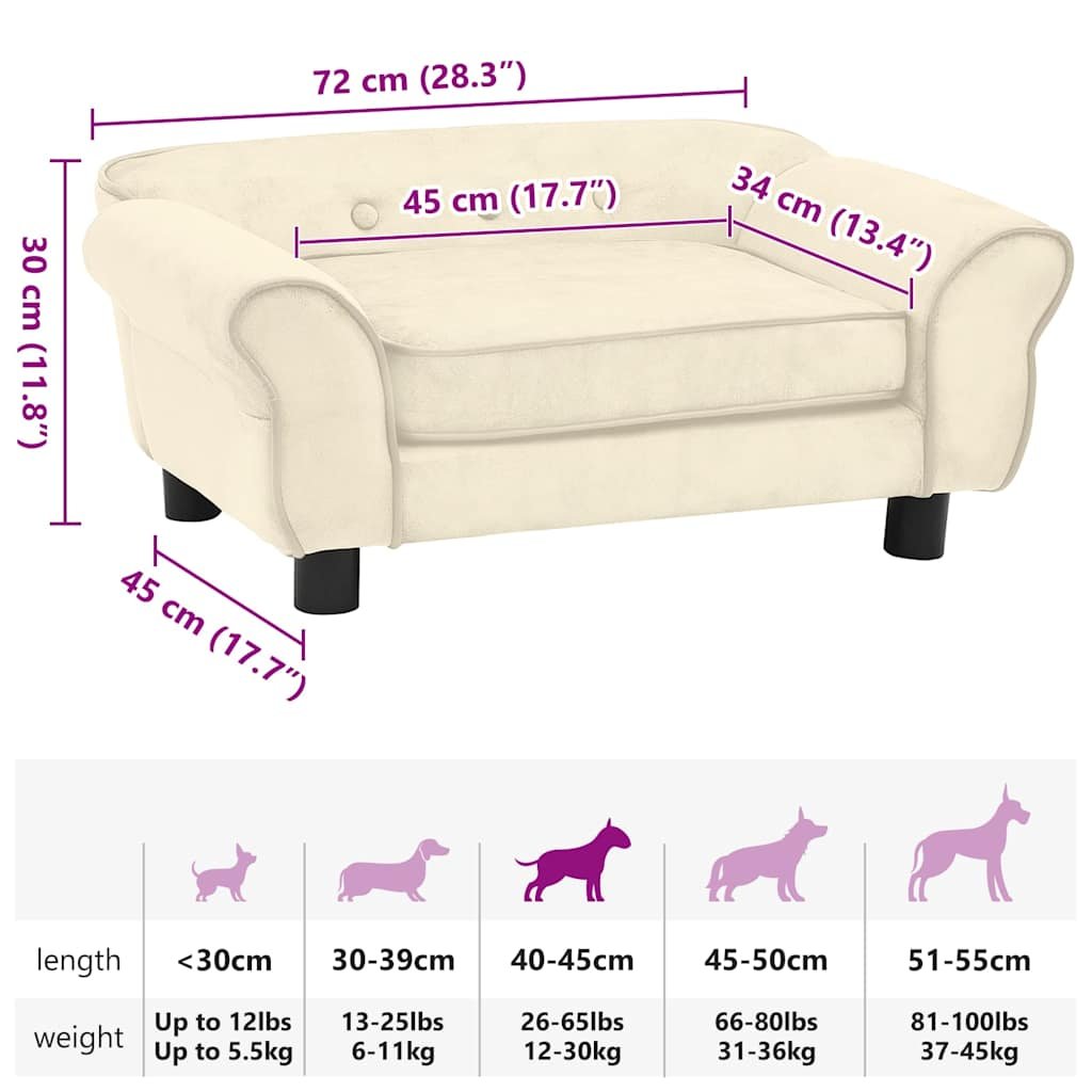 Pohovka pro psy krémová 72 x 45 x 30 cm plyš 171042