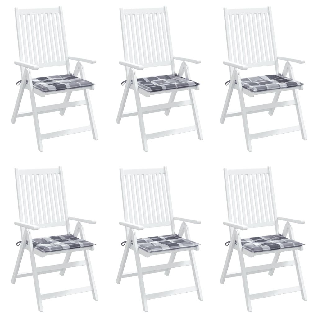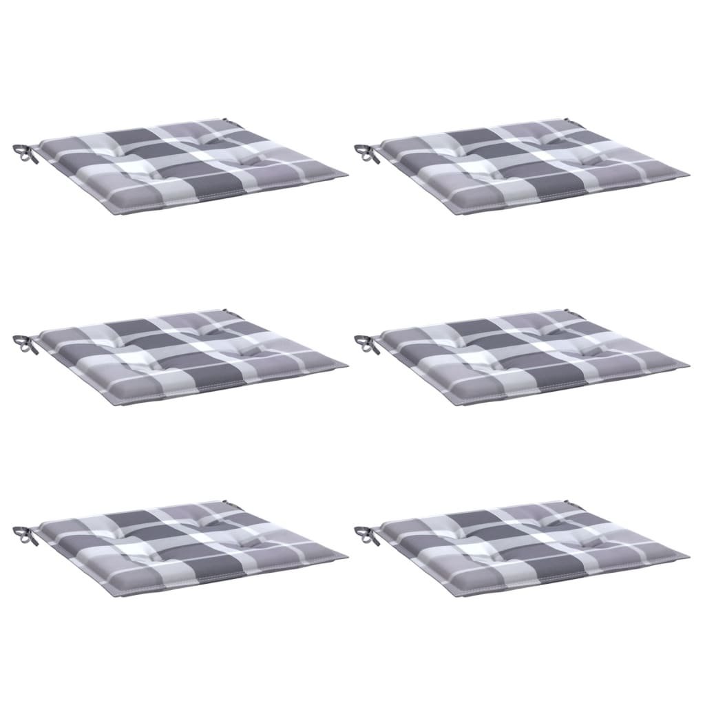 Podušky na zahradní židli 6 ks šedé kárované 50x50x3 cm oxford 314073
