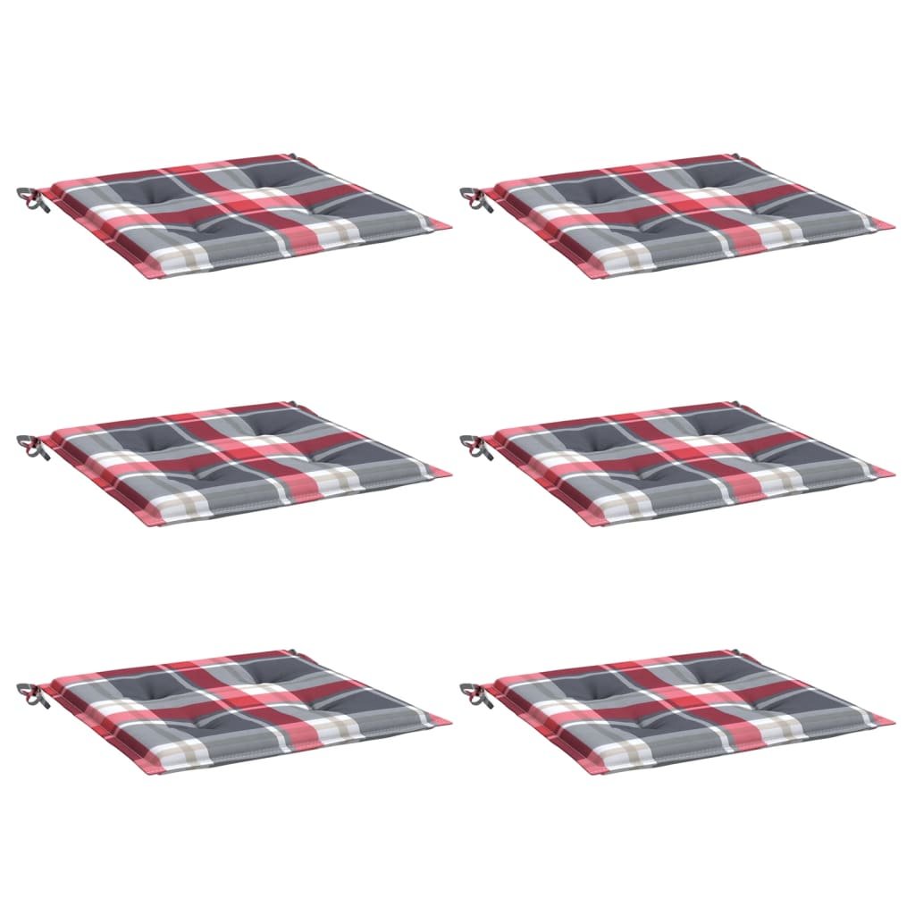 Podušky na zahradní židli 6ks červené kárované 40x40x3cm oxford 314034