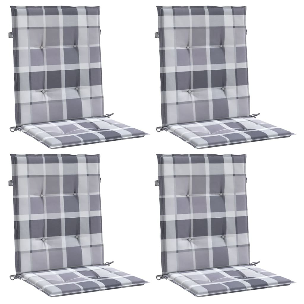 Podušky na židli nízké opěradlo 4 ks šedé kárované 100x50x3 cm 314156