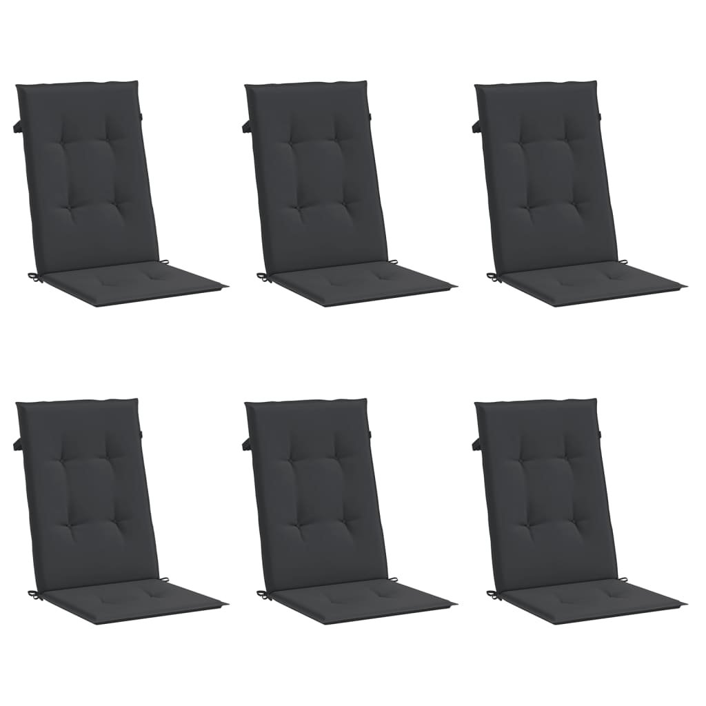 Podušky na židli vysoké opěradlo 6 ks černé 120x50x3 cm textil 314111