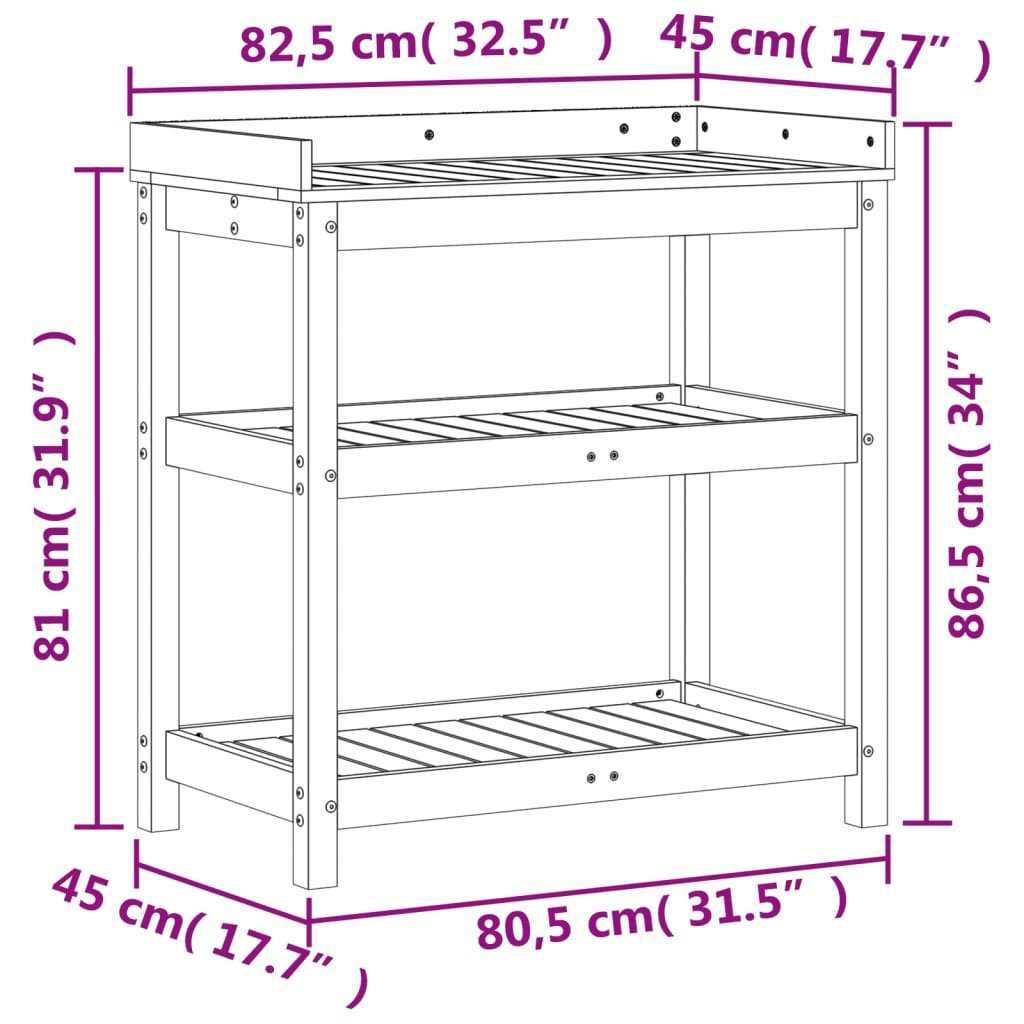 Přesazovací stůl s policemi 82,5x45x86,5 cm masivní borovice 832432