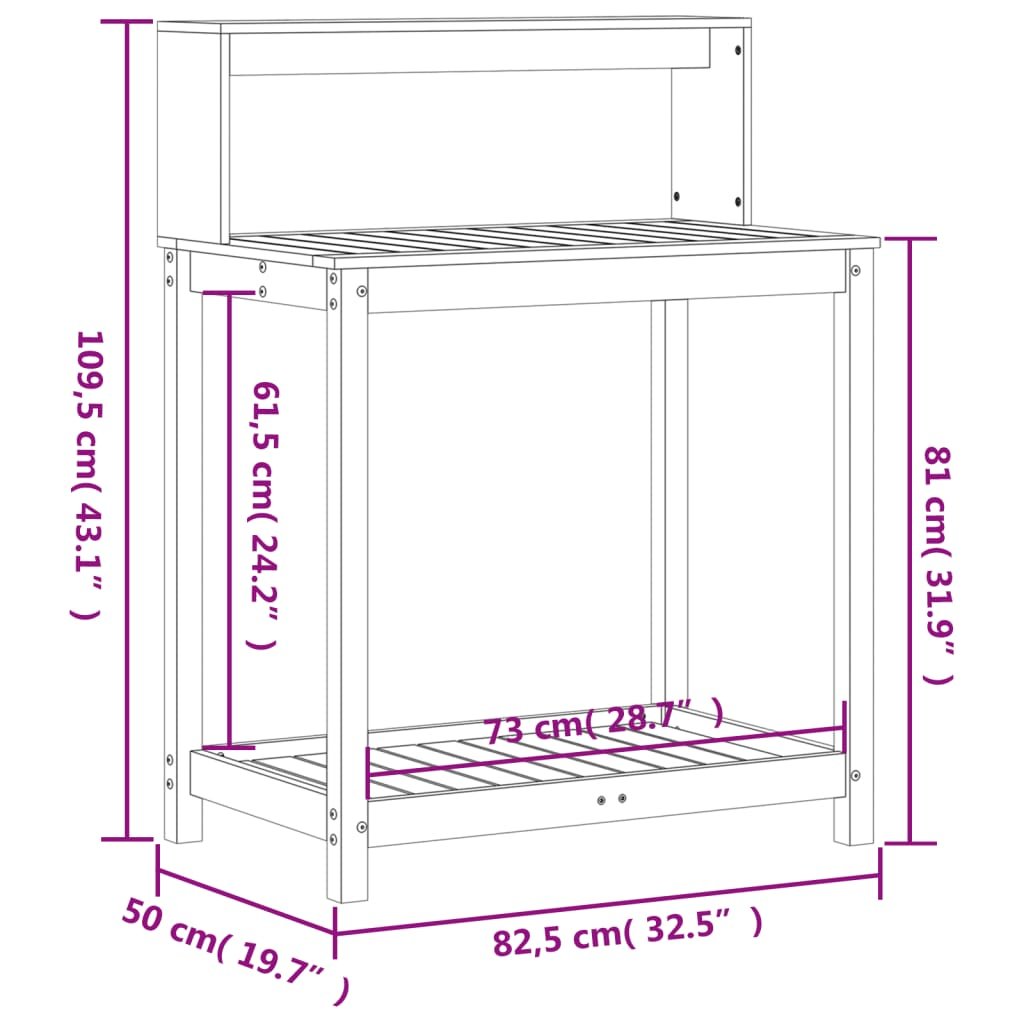 Přesazovací stůl s policemi 82,5x50x109,5 cm masivní borovice 832407