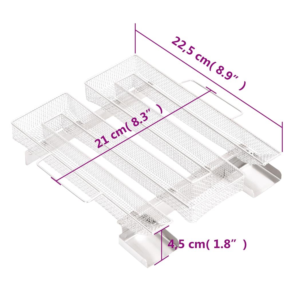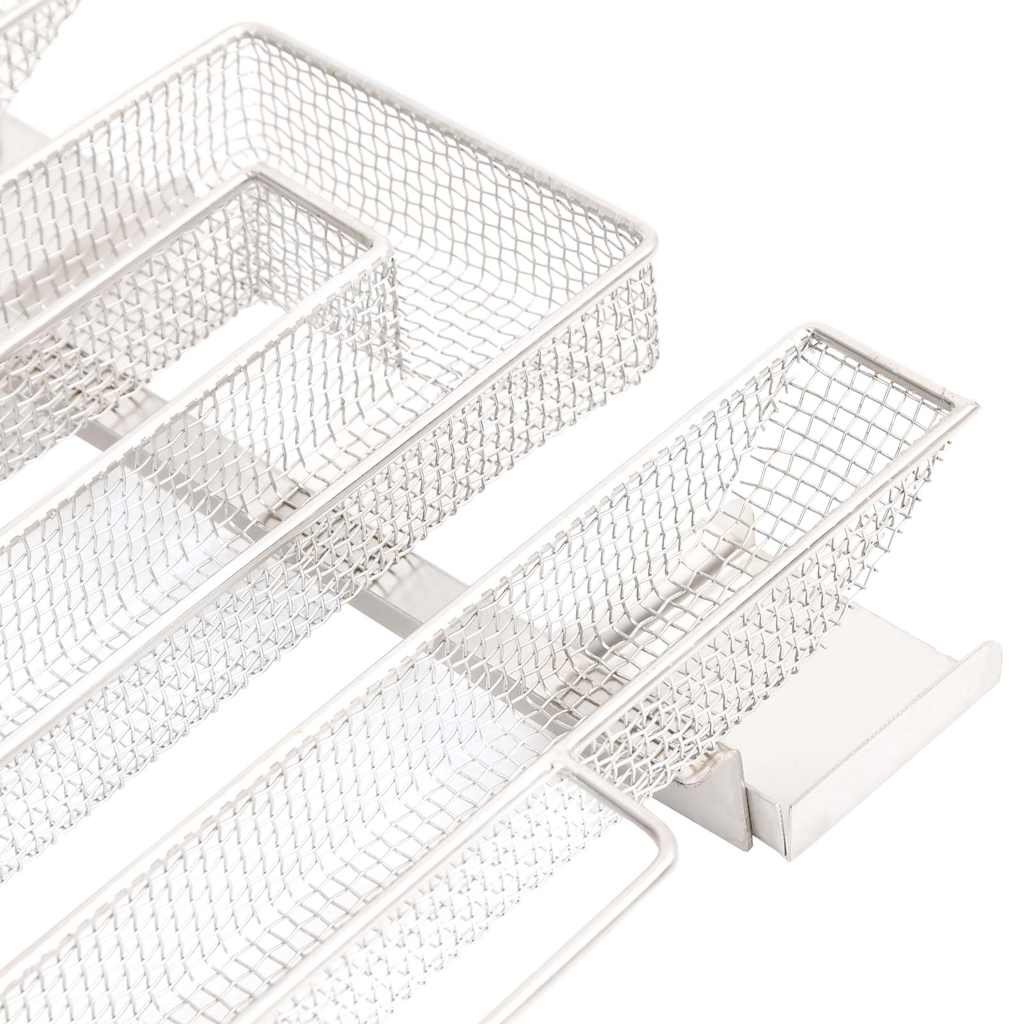 - Pevná mřížková konstrukce: Kompaktní mřížka ve tvaru M umožňuje rovnoměrné a pomalé hoření třísek až po dobu 10 hodin. Délka trvání závisí především na druhu dřeva určeného k uzení. Pro dosažení nejlepších výsledků se doporučuje používat štěpky o velikosti zrn 0,5–2,0 mm.