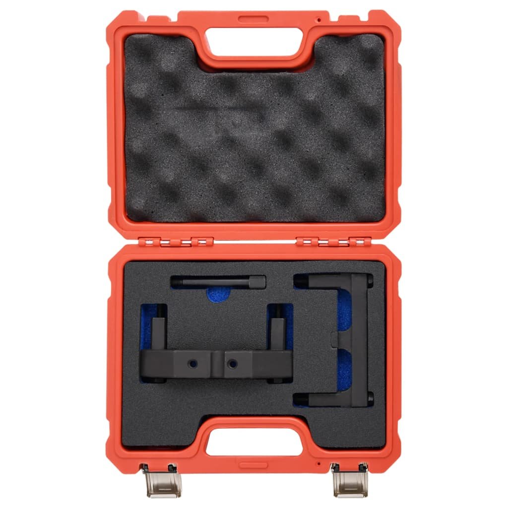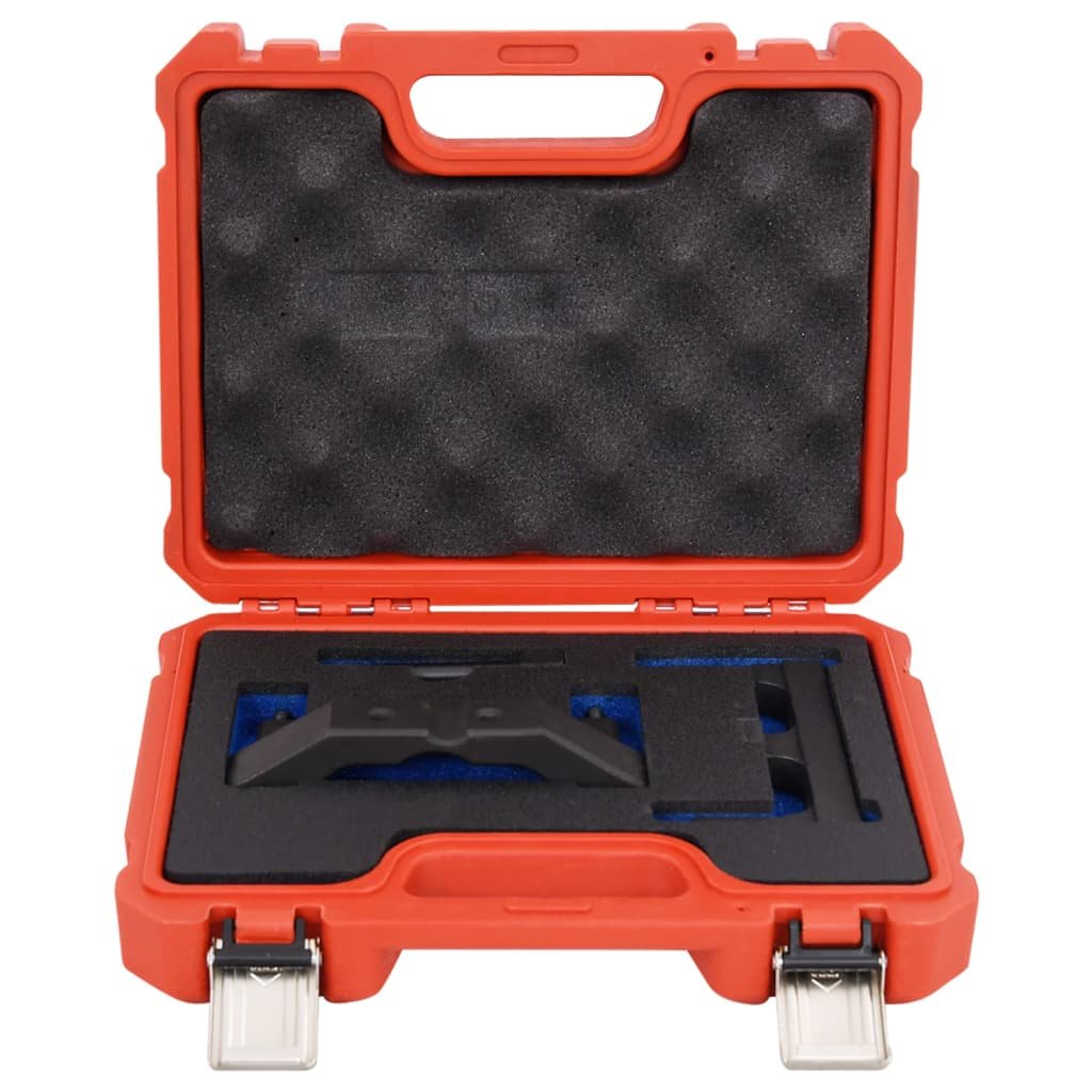 Sada nástrojů pro časování motoru obsahuje přípravky k aretaci vačkové hřídele při nastavování časování. Celý set je uspořádán v odolném kufříku, takže se snadno skladuje i přepravuje.