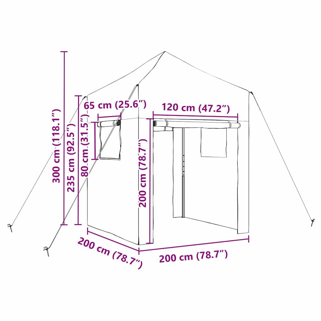 Skleník se střechou Zelená 200 x 200 x 300 cm Ocel 42006641