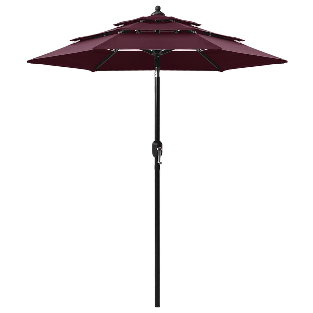 3stupňový zahradní slunečník s hliníkovou tyčí bordó 2 m 313856