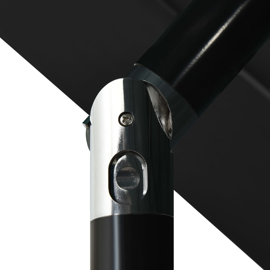 Zahradní slunečník je vyrobený z polyesteru, který nebledne a skvěle odolává UV záření, poskytne vám tedy optimální ochranu proti slunci. Stabilitu zajišťují práškově lakovaná hliníková tyč a žebra. Slunečník je vybavený klikovým mechanismem a funkcí naklápění, je skládací a přenosný. Můžete ho zasadit do svého stávajícího stojanu nebo doprostřed stolů s otvorem na slunečník.