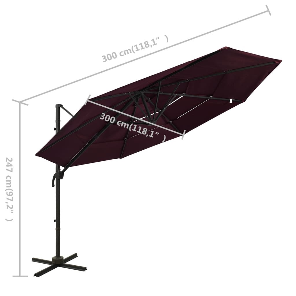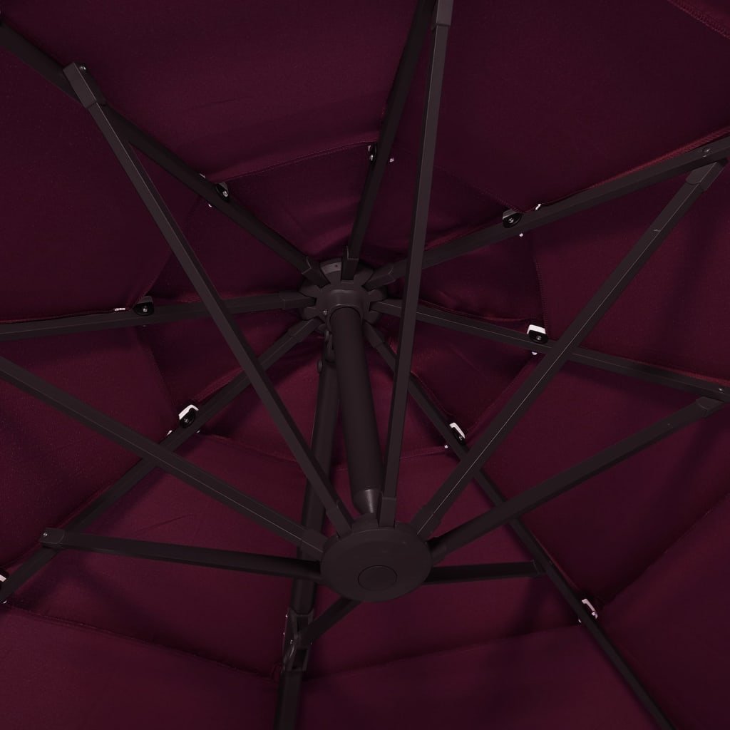 4stupňový zahradní slunečník s hliníkovou tyčí bordó 3 x 3 m 313832