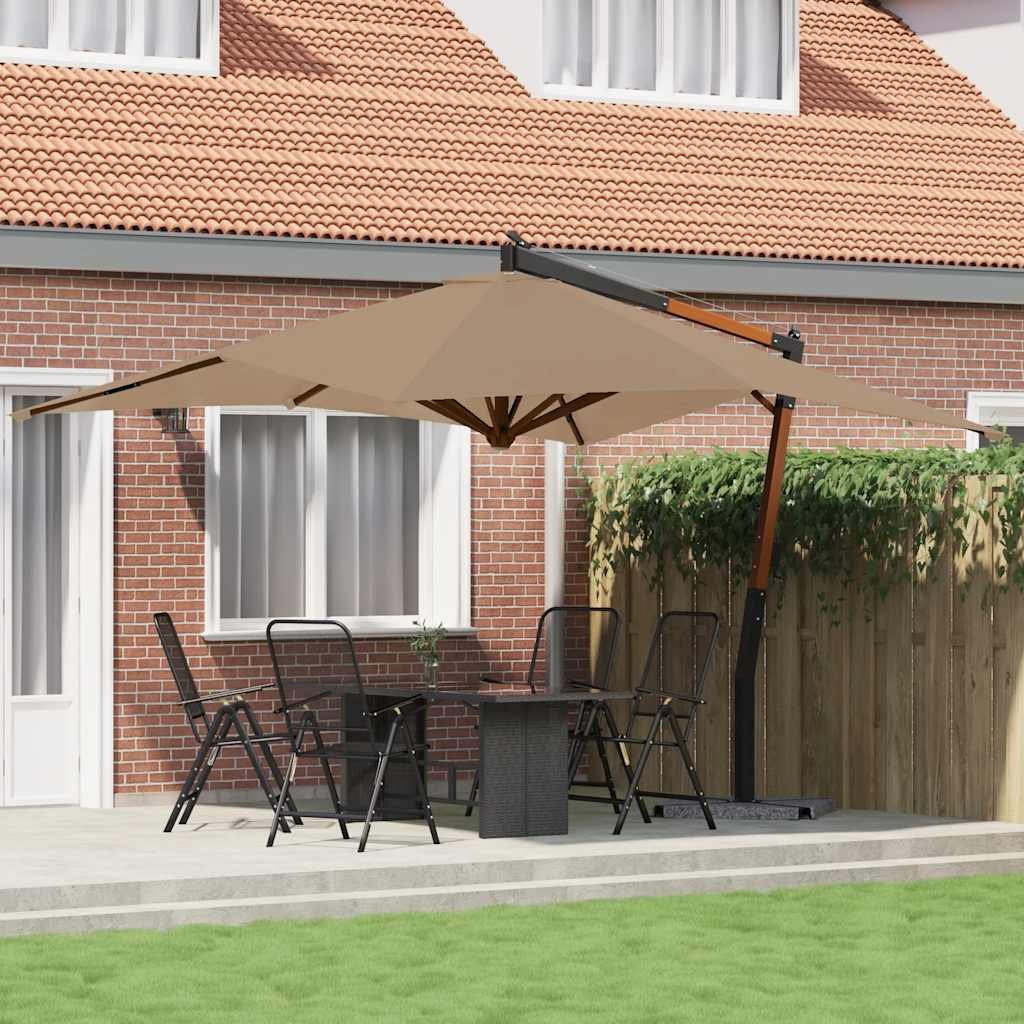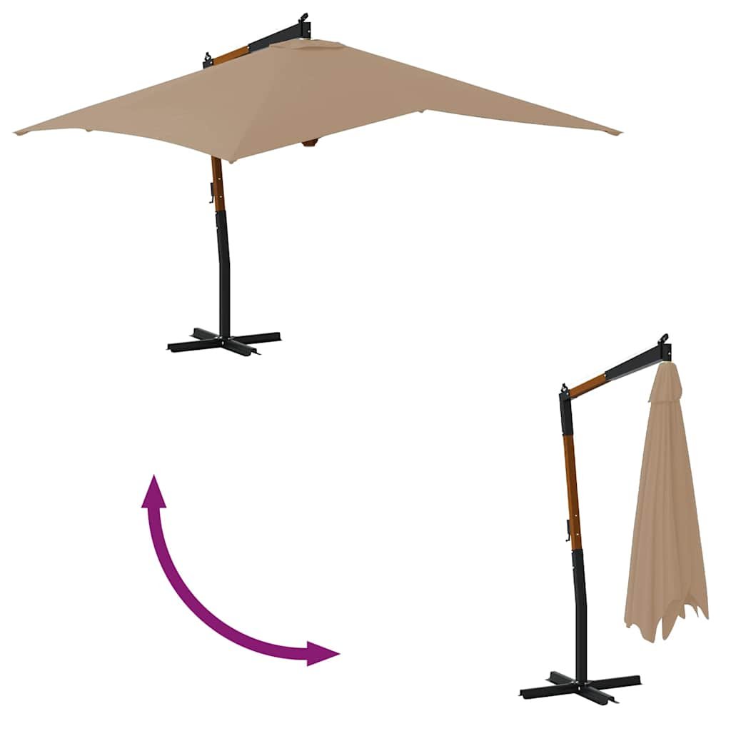 Boční zahradní slunečník s dřevěnou tyčí 400 x 300 cm taupe 318431