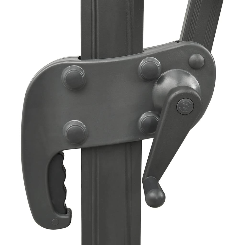 Stříška slunečníku je vyrobená z polyesterové tkaniny, která nebledne a nepropouští škodlivé UV záření, takže vám poskytne optimální ochranu před sluncem. Navíc se snadno čistí. Křížová základna zaručuje lepší stabilitu. Exkluzivní konstrukce vám umožní slunečník naklánět a otáčet o 360 stupňů, aby blokoval slunce v každé situaci. Silná hliníková tyč s 8 žebry zajišťuje, že se slunečník nehýbe a vydrží vám dlouho sloužit. Zahradní slunečník je vybavený klikovým mechanismem, dá se tedy bez námahy otevírat i zavírat. Design s dvojitou stříškou napomáhá lepší ventilaci.