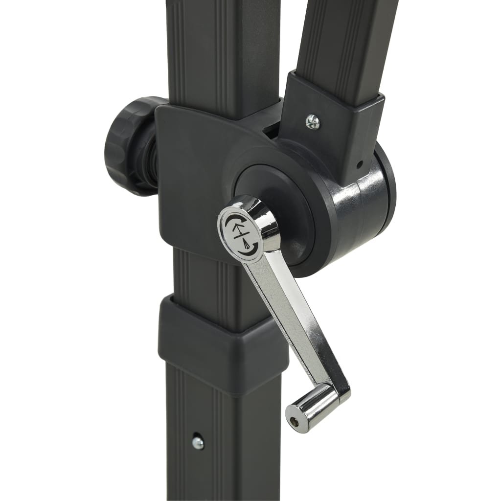 Stříška slunečníku je vyrobená z polyesterové tkaniny, která nebledne a nepropouští škodlivé UV záření, takže vám poskytne optimální ochranu před sluncem. Navíc se snadno čistí. Křížová základna zaručuje lepší stabilitu. Exkluzivní konstrukce vám umožní slunečník naklánět a otáčet o 360 stupňů, aby blokoval slunce v každé situaci. Silná hliníková tyč s 8 žebry zajišťuje, že se slunečník nehýbe a vydrží vám dlouho sloužit. Zahradní slunečník je vybavený klikovým mechanismem, dá se tedy bez námahy otevírat i zavírat. Design s dvojitou stříškou napomáhá lepší ventilaci.