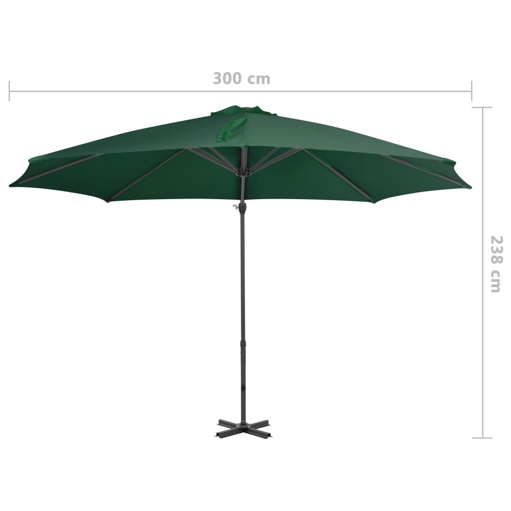 Boční zahradní slunečník s hliníkovou tyčí zelený 300 cm 44621