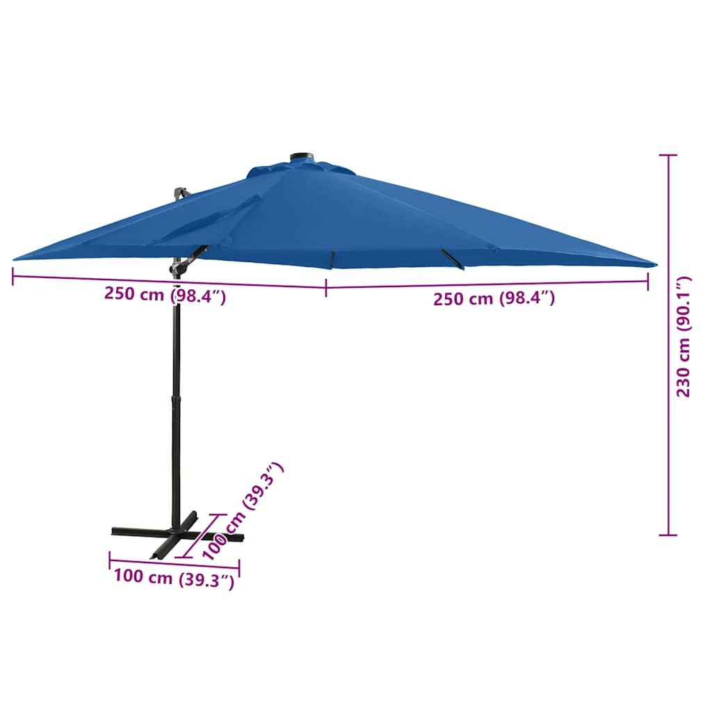 Boční zahradní slunečník s tyčí a LED azurově modrý 250 cm 312325