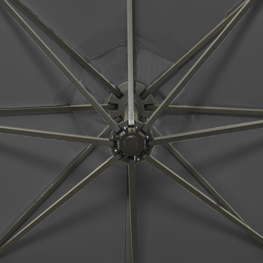 Boční zahradní slunečník s tyčí a LED světly antracitový 300 cm 312338