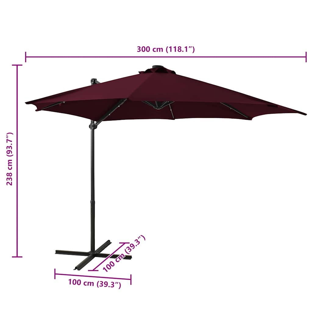 Tento elegantní boční zahradní slunečník s LED světly je skvělou volbou, která vám poskytne stín, a ochrání vás tak před sluníčkem a jeho škodlivým UV zářením. Když zapadne slunce, LED diody osvětlí váš venkovní prostor.