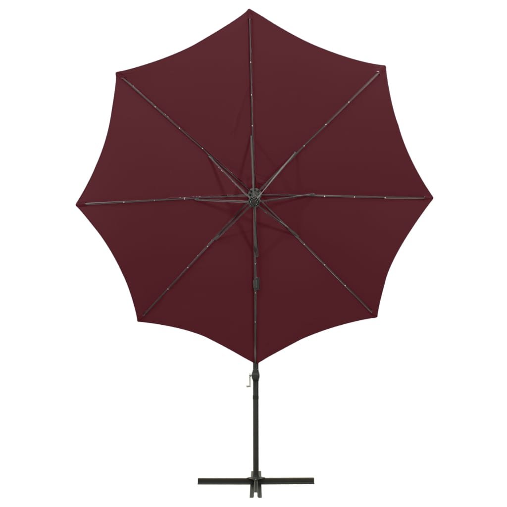 Boční zahradní slunečník s tyčí a LED světly bordó 300 cm 312342