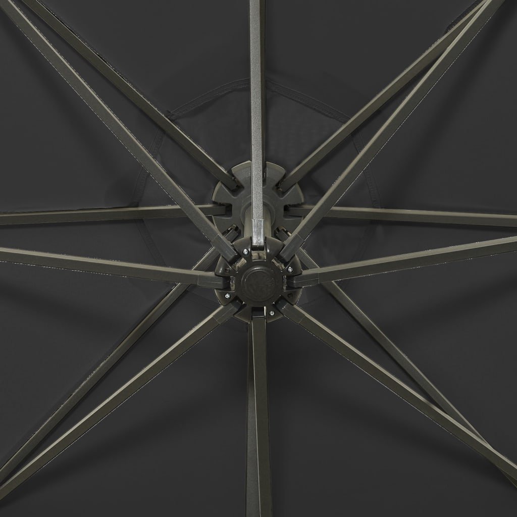 Boční zahradní slunečník s tyčí a LED světly černý 300 cm 312340