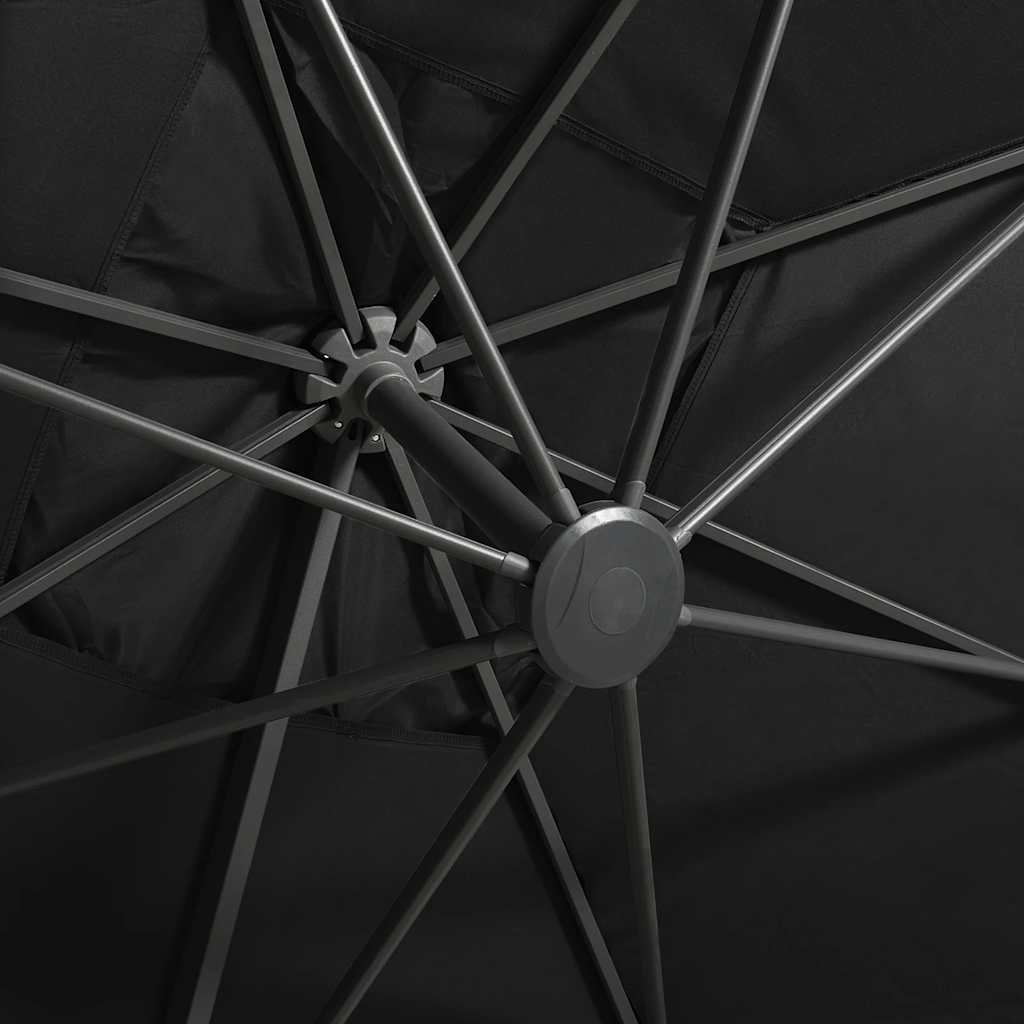 Potah slunečníku je vyrobený z neblednoucího polyesteru chránícího před UV zářením a poskytuje vám optimální ochranu před sluncem a snadno se čistí. Slunečník je vybaven pevnou křížovou základnou, která zaručuje lepší stabilitu. Exkluzivní konstrukce vám umožní zahradní slunečník naklánět a otáčet o 360 stupňů, aby blokoval slunce v jakémkoli úhlu. Silná hliníková tyč s 8 žebry slunečníku zajišťuje stabilitu a dlouhou životnost. Náš zahradní slunečník disponuje klikovým mechanismem, což znamená, že se snadno otevírá i zavírá. Terasový slunečník rovněž disponuje 24 LED světly, která po západu slunce osvětlí váš venkovní prostor a vytvoří romantickou atmosféru.