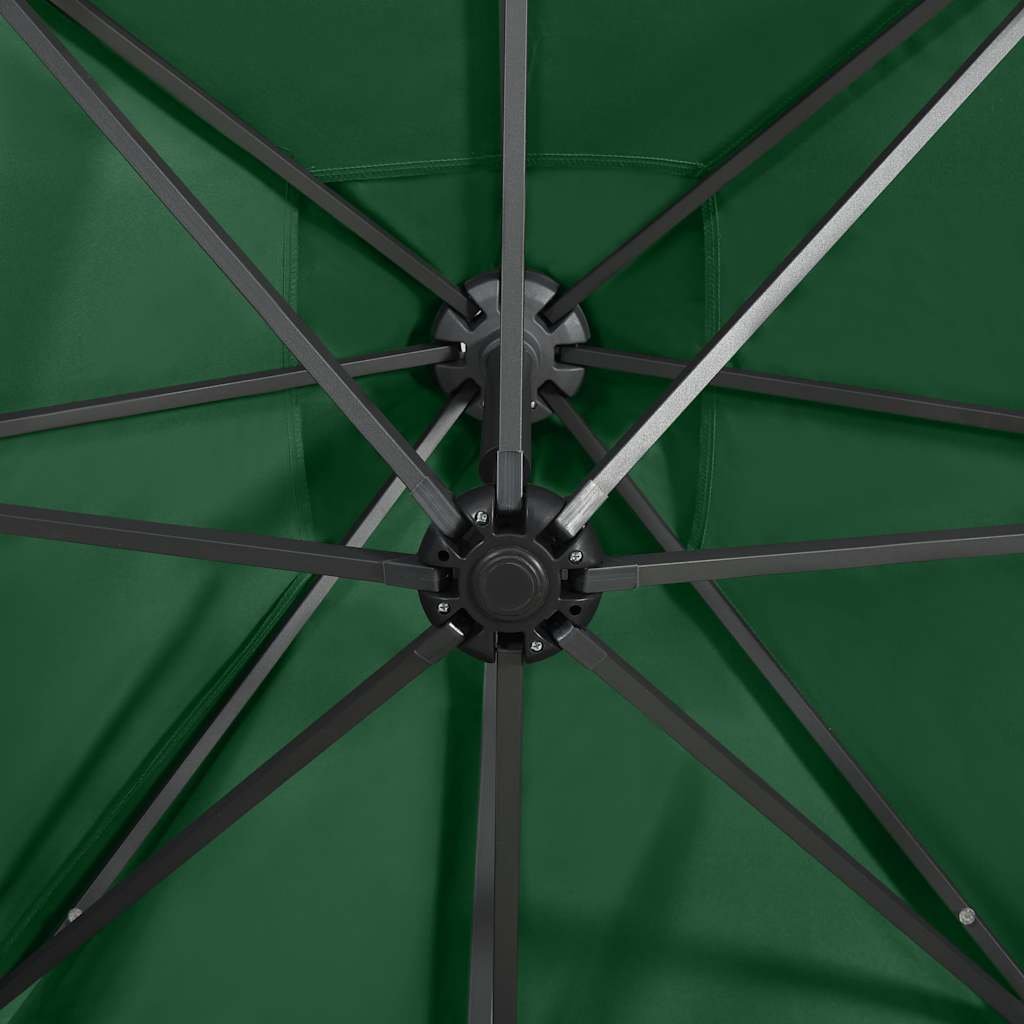 Potah slunečníku je vyrobený z neblednoucího polyesteru chránícího před UV zářením a poskytuje vám optimální ochranu před sluncem a snadno se čistí. Slunečník je vybaven pevnou křížovou základnou, která zaručuje lepší stabilitu. Exkluzivní konstrukce vám umožní zahradní slunečník naklánět a otáčet o 360 stupňů, aby blokoval slunce v jakémkoli úhlu. Silná hliníková tyč s 8 žebry slunečníku zajišťuje stabilitu a dlouhou životnost. Náš zahradní slunečník disponuje klikovým mechanismem, což znamená, že se snadno otevírá i zavírá. Terasový slunečník rovněž disponuje 24 LED světly, která po západu slunce osvětlí váš venkovní prostor a vytvoří romantickou atmosféru.