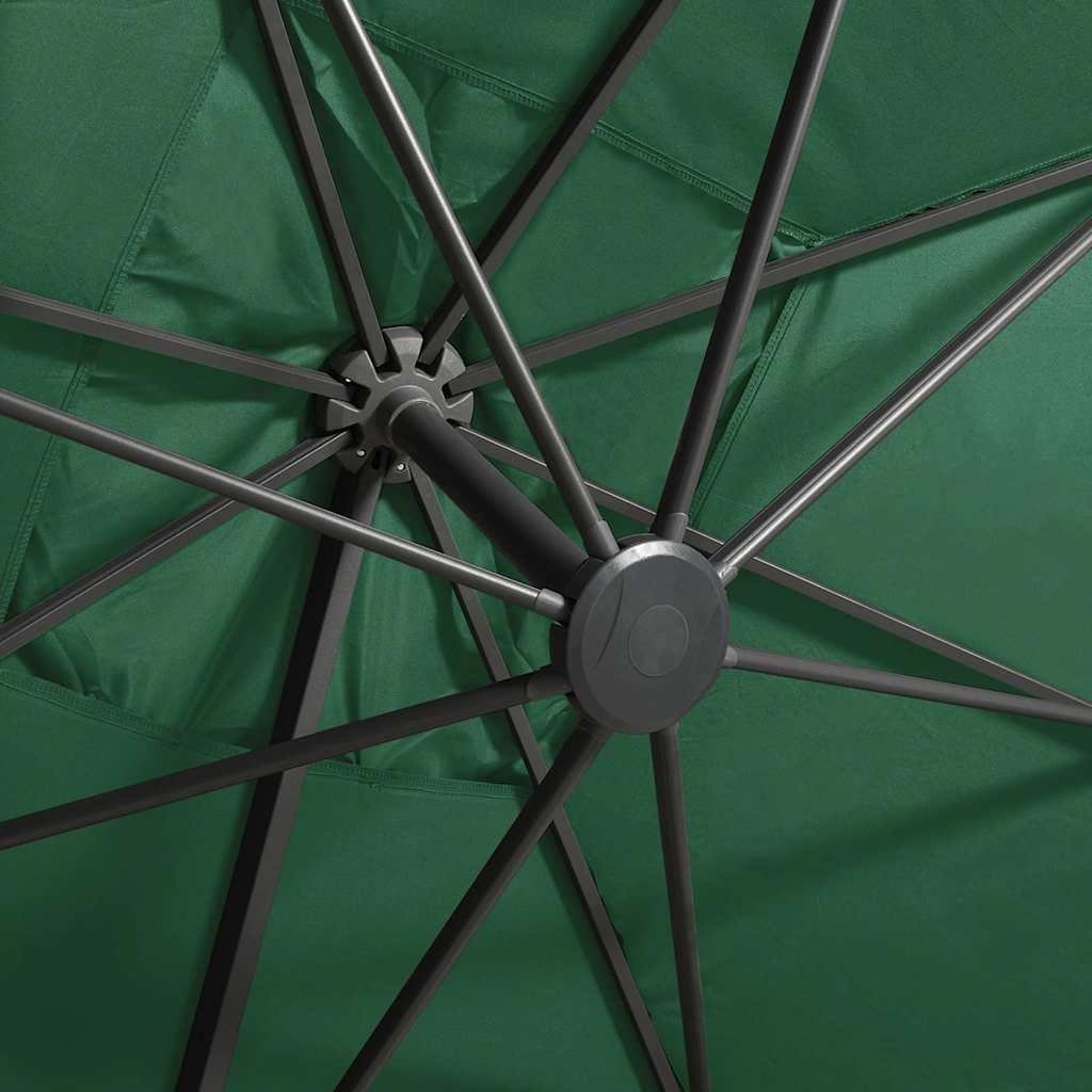 Potah slunečníku je vyrobený z neblednoucího polyesteru chránícího před UV zářením a poskytuje vám optimální ochranu před sluncem a snadno se čistí. Slunečník je vybaven pevnou křížovou základnou, která zaručuje lepší stabilitu. Exkluzivní konstrukce vám umožní zahradní slunečník naklánět a otáčet o 360 stupňů, aby blokoval slunce v jakémkoli úhlu. Silná hliníková tyč s 8 žebry slunečníku zajišťuje stabilitu a dlouhou životnost. Náš zahradní slunečník disponuje klikovým mechanismem, což znamená, že se snadno otevírá i zavírá. Terasový slunečník rovněž disponuje 24 LED světly, která po západu slunce osvětlí váš venkovní prostor a vytvoří romantickou atmosféru.