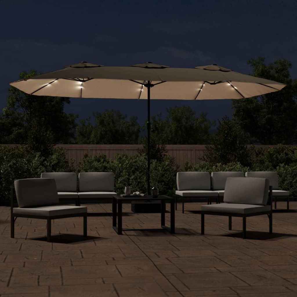 Tento elegantní dvojitý zahradní slunečník s LED diodami vám poskytne stín, a ochrání vás tak před sluníčkem a jeho škodlivým UV zářením.