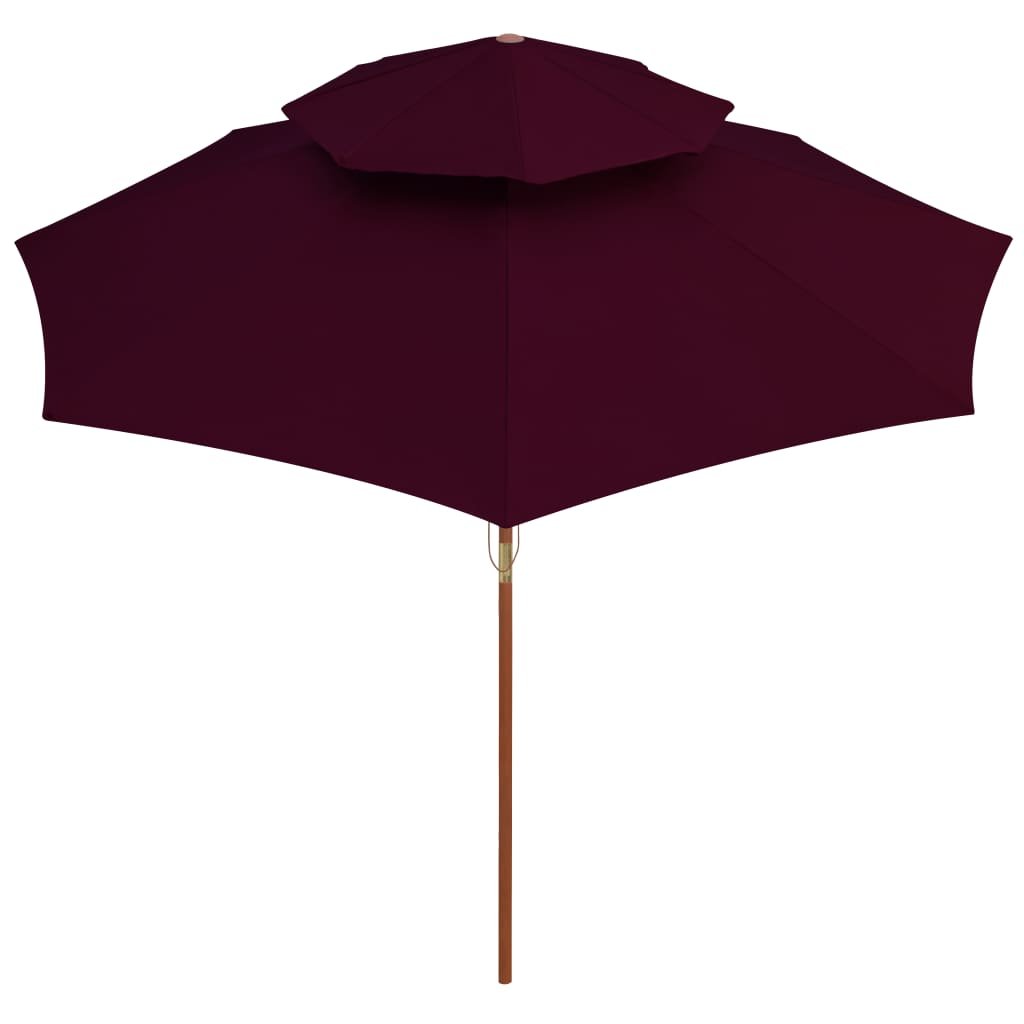Dvoupatrový slunečník s dřevěnou tyčí bordó 270 cm 313764