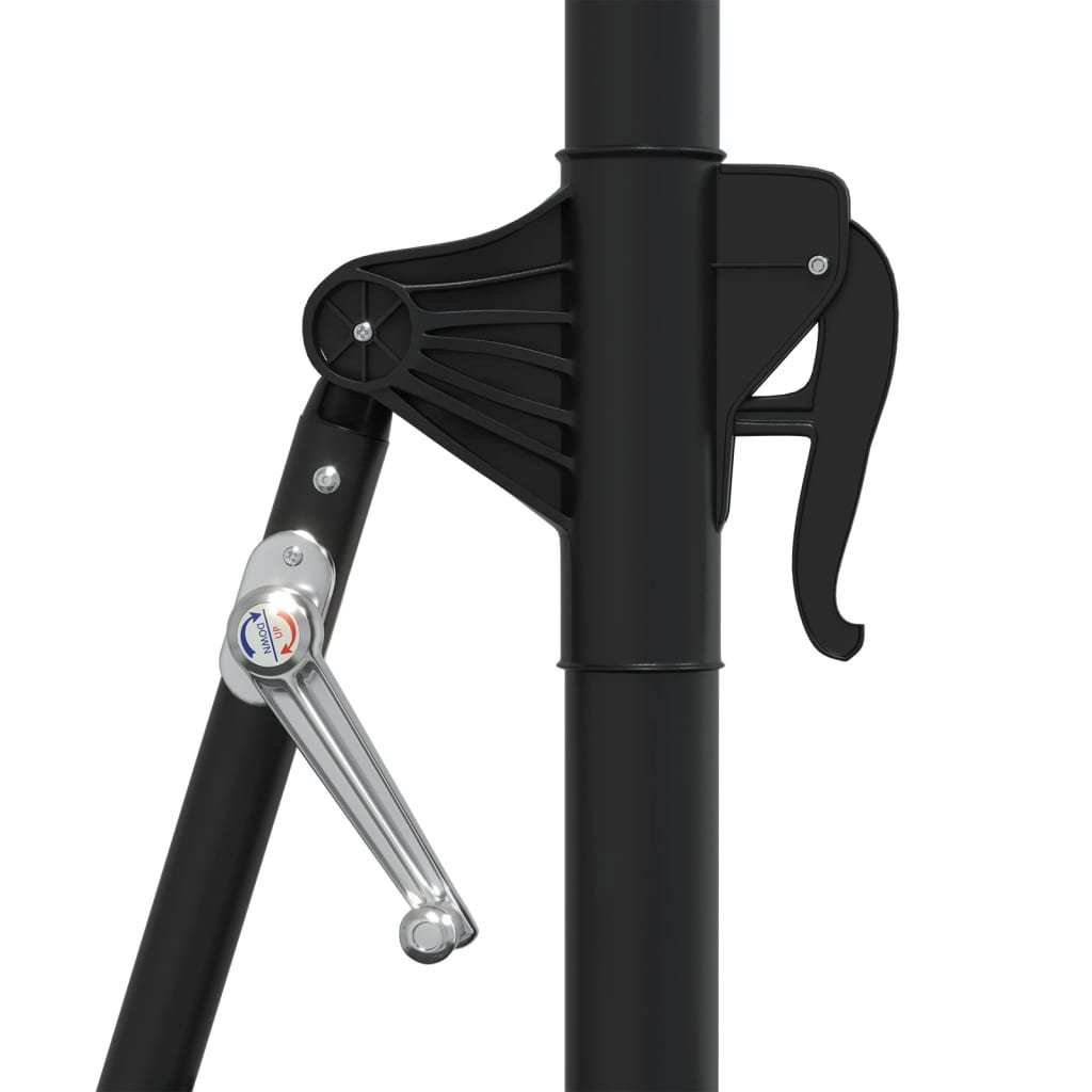 Stříška slunečníku je vyrobena z polyesterové tkaniny, která nepropouští škodlivé UV záření a nevybledne, a poskytne vám optimální ochranu před sluncem. Navíc se snadno čistí. Exkluzivní konstrukce tohoto slunečníku vám umožní naklonit ho tak, aby blokoval slunce, jak klesá za obzor. Silná kovová tyč s 8 odolnými žebry zajišťuje, že se slunečník nehýbe a hodně toho vydrží. Náš zahradní slunečník disponuje klikovým mechanismem, což znamená, že se snadno otevírá i zavírá. Sestavení výrobku je jednoduché. Balení obsahuje také montážní příslušenství.