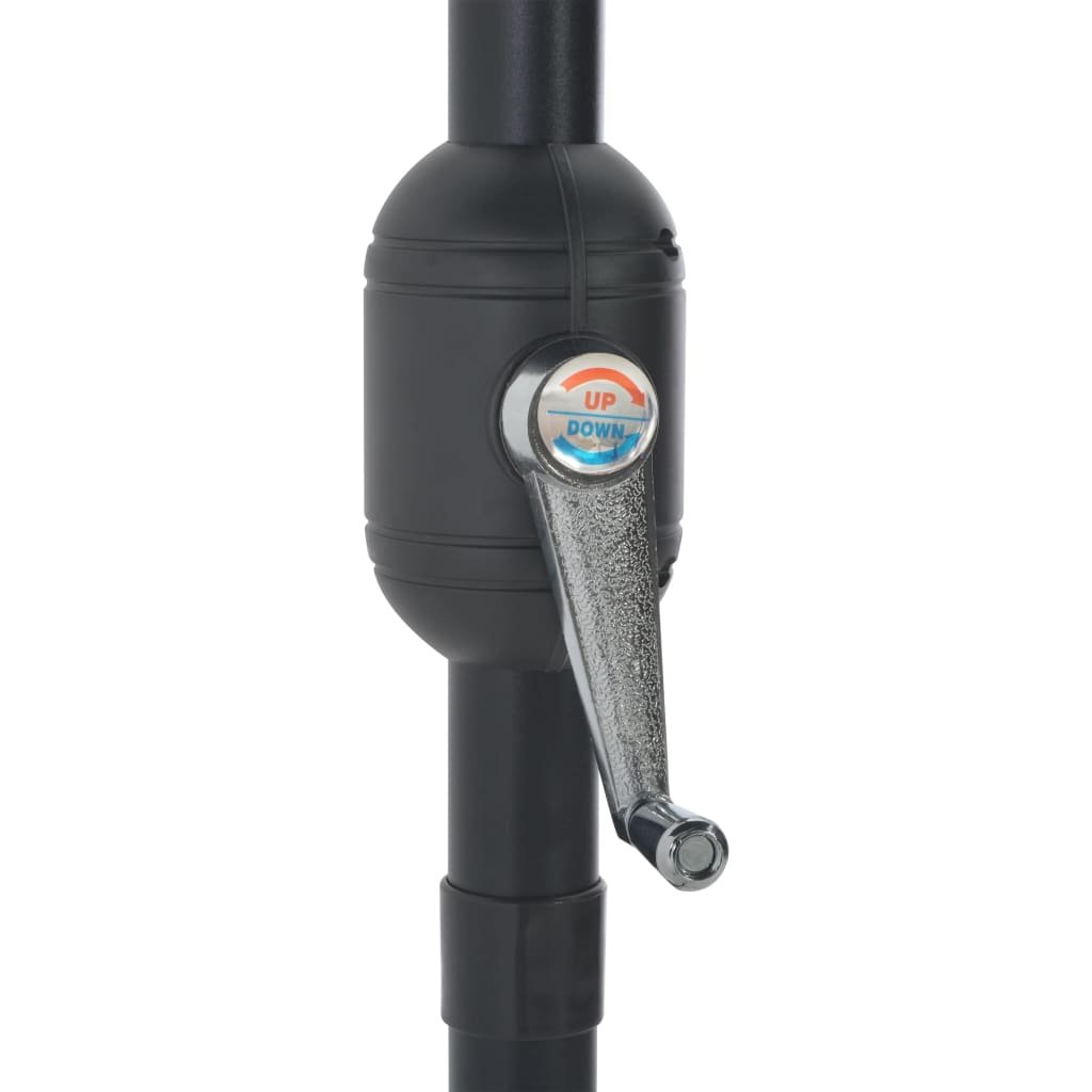 Stříška slunečníku je vyrobená z polyesterové tkaniny, která nepropouští škodlivé UV záření, poskytne vám tedy optimální ochranu před sluncem. Navíc nevybledne a snadno se čistí. Průměr tyče je 38 mm a můžete ji namontovat do stojanu na slunečník nebo doprostřed stolů s otvorem na slunečník. Půlkruhový design dodává slunečníku jedinečné kouzlo. Silná hliníková tyč s 5 pevnými ocelovými žebry zajišťuje, že se slunečník nehýbe a hodně toho vydrží. Zahradní slunečník disponuje klikovým mechanismem, což umožňuje jednoduché otevírání i zavírání.