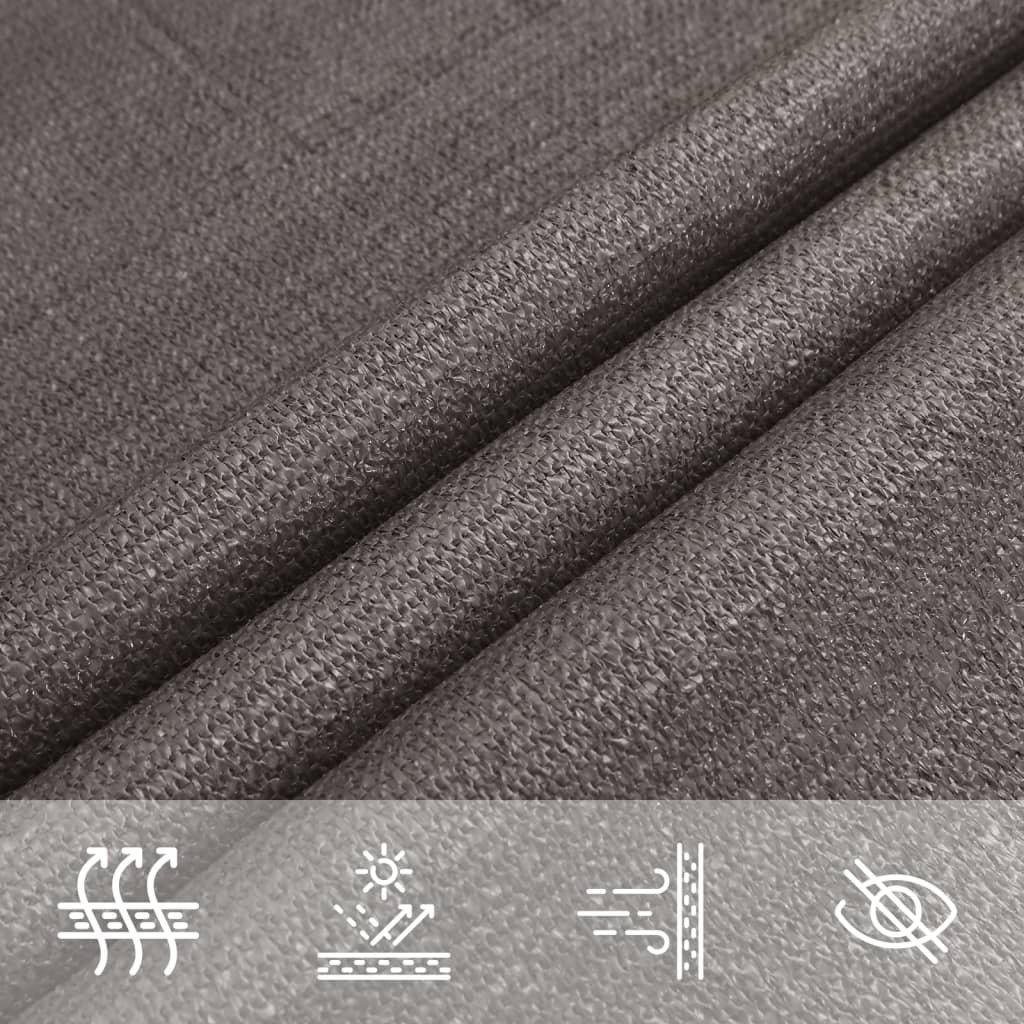 Sluneční plachta vyrobená ze 100% HDPE (vysokohustotní polyethylen) vás chrání před přímým slunečním zářením, umožňuje dostatečný průchod vzduchu a je propustná pro vodu. HDPE je speciálně upraven, takže je odolný proti plísním a UV záření. Slunečník se snadno sestavuje pomocí nerezových upevňovacích prvků na každém rohu a přiložených lanek.