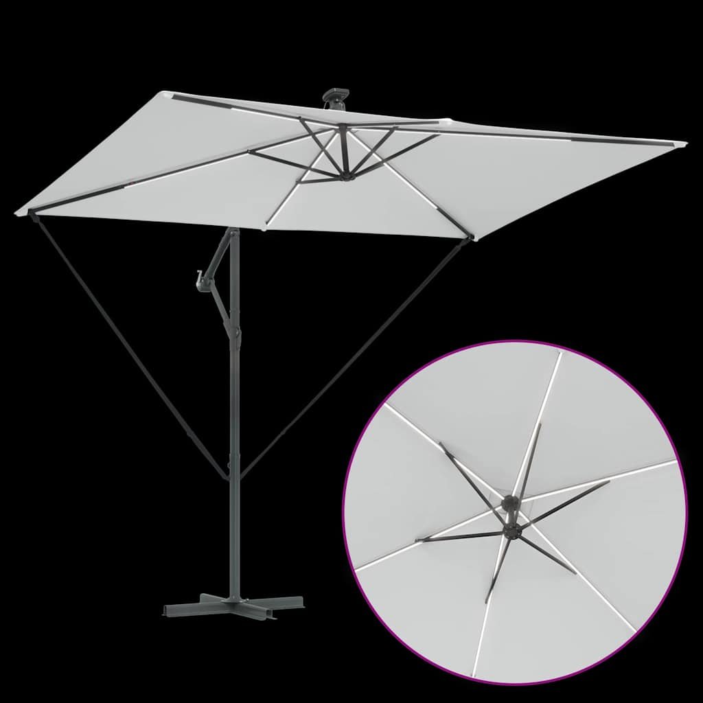 - Solární LED osvětlení: Navržen pro večerní zábavu, tento deštník zahrnuje jasné, ekologické LED osvětlení napájené solární energií. Ať už pořádáte zahradní večeři nebo noční povídání, útulná atmosféra, kterou vytváří, obohacuje jakýkoliv zážitek pod širým nebem během noci.