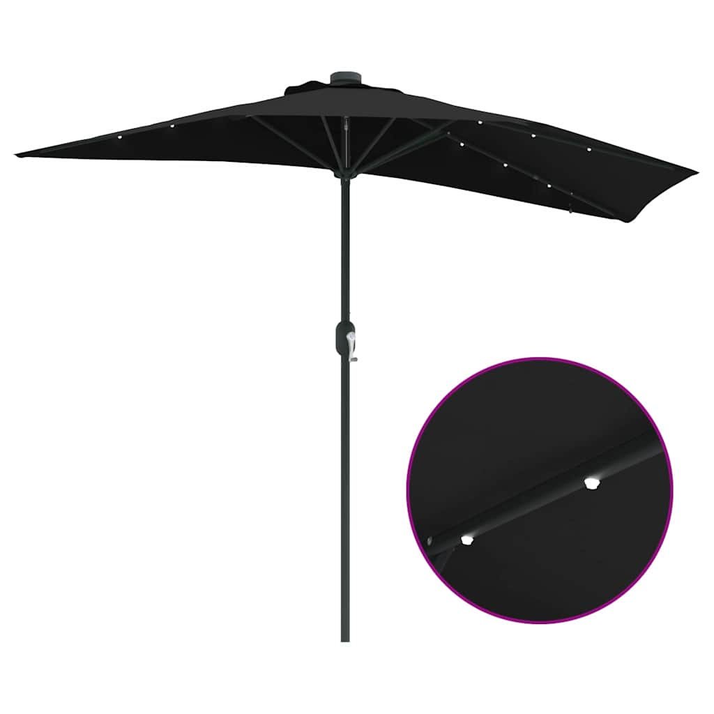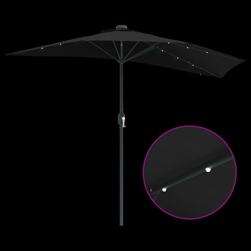 - LED světla: O vybavená praktickými LED světly, tenhle slunečník rozjasní vaše venkovní akce v noci. Solární LED jsou eco-friendly a vydávají jemné světlo, co je ideální na večerní sezení venku.