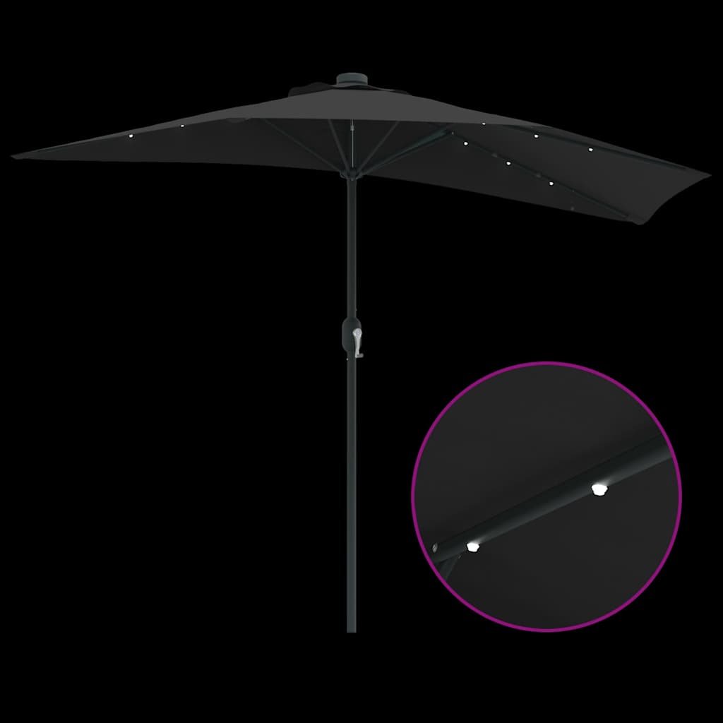 Tento moderní zahradní deštník přináší stín a světlo pro vaše venkovní chvíle odpočinku. Perfektní na balkóny, zahrady nebo terasy, jeho stylový design skvěle zapadne a ochrání vás před sluncem. Vytváří příjemnou atmosféru, ideální pro denní i noční setkání. S LED osvětlením si užijete večery i po setmění, tenhle deštník spojuje styl s praktičností a vyzývá vás užít si venkovní prostory déle.