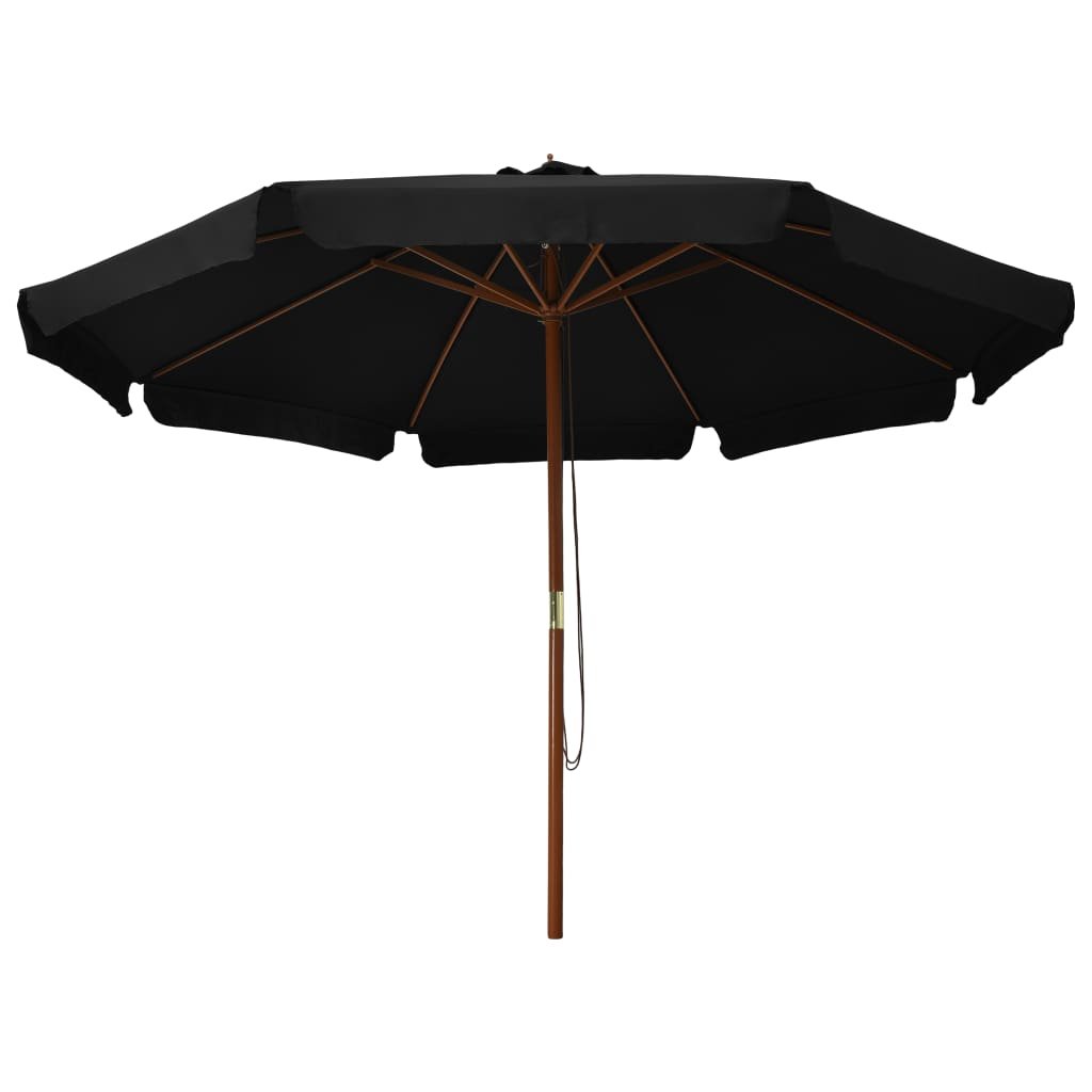 Zahradní slunečník s dřevěnou tyčí 330 cm černý 47218