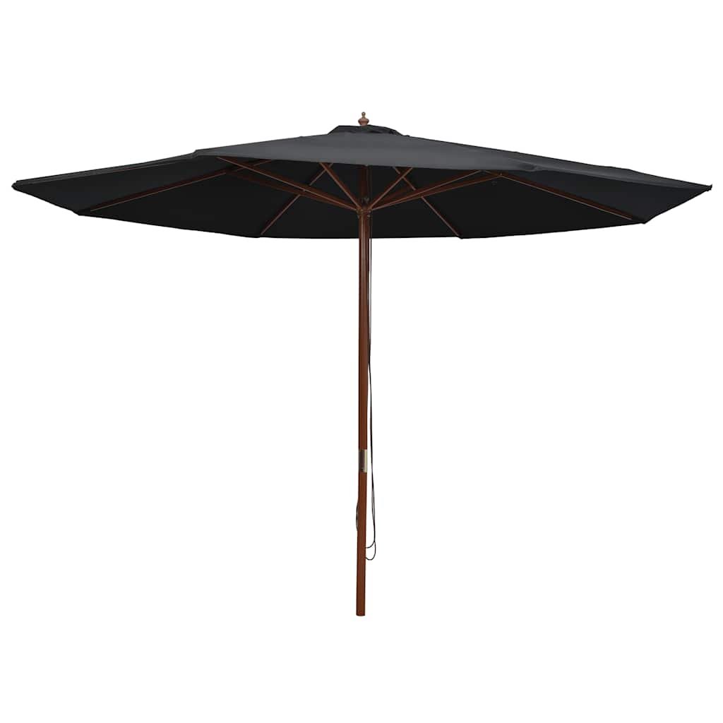 Zahradní slunečník s dřevěnou tyčí 350 cm černý 47138